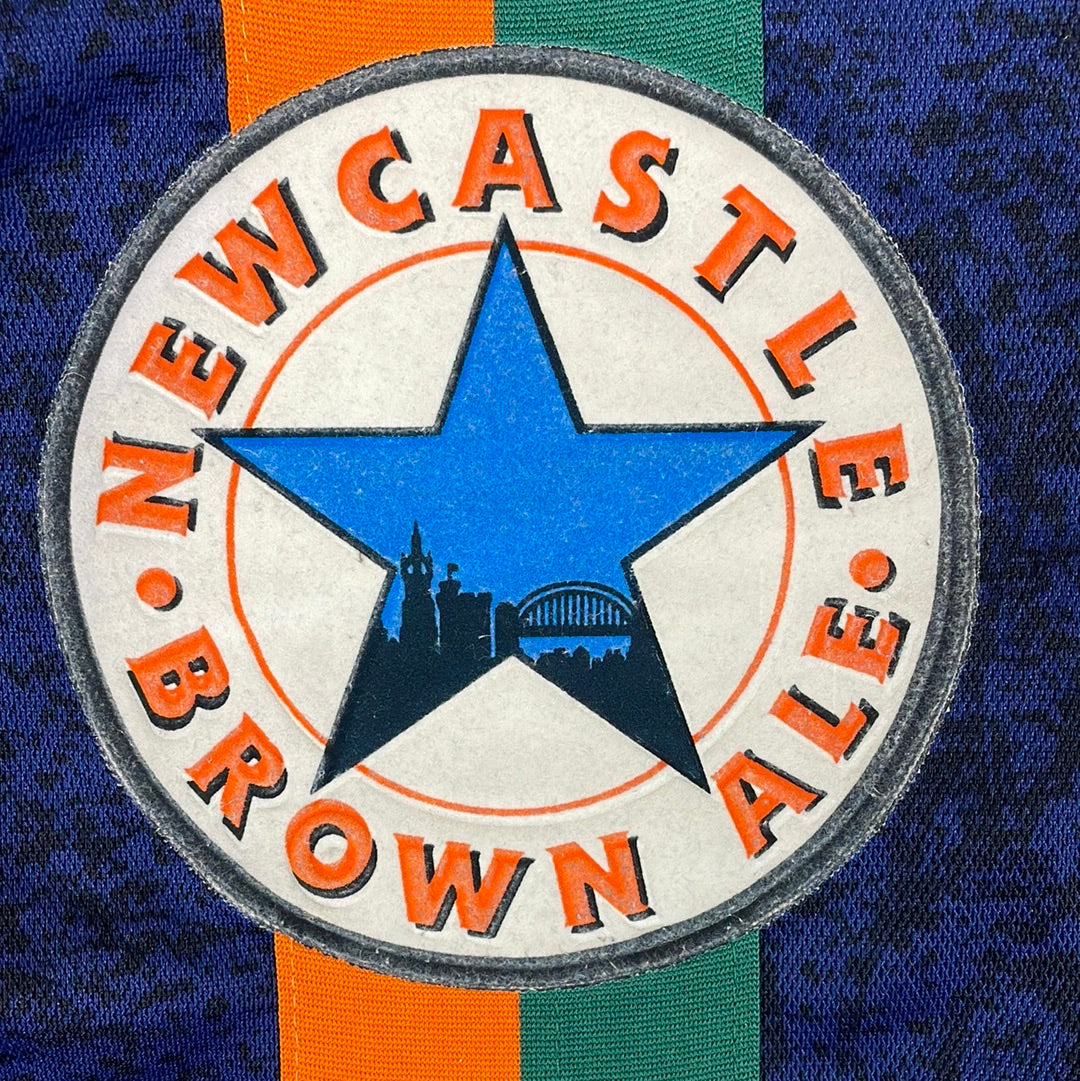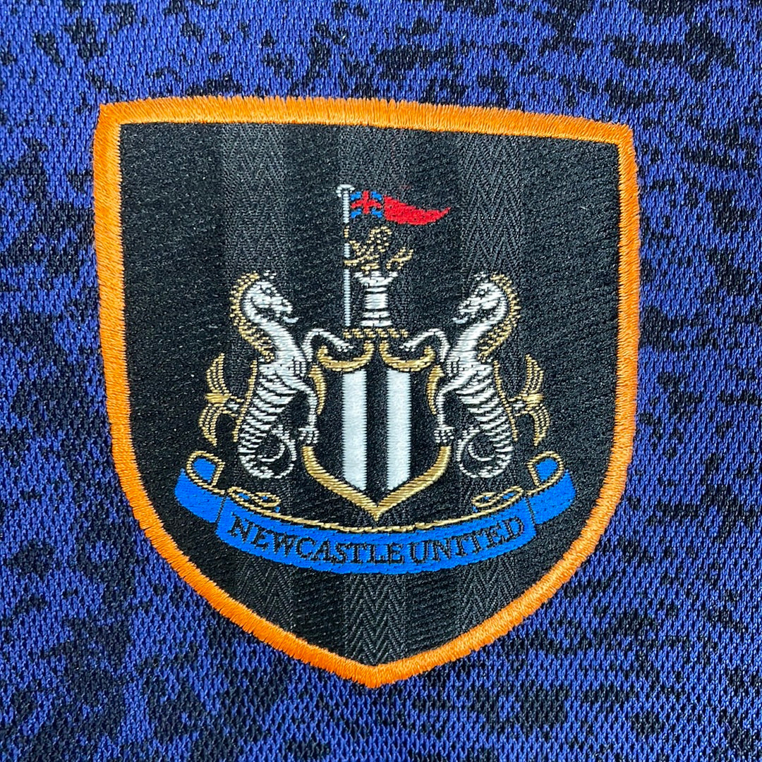 Shirt info: The away shirt for Newcastle from the 1997/1998 season. A rather odd one as far as Newcastle away shirts go but a very nice design all the same. There is a nice pattern on the dark blue and the orange and green offsets it well.
