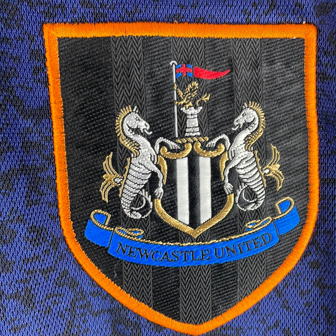 Shirt info: The away shirt for Newcastle from the 1997/1998 season. A rather odd one as far as Newcastle away shirts go but a very nice design all the same. There is a nice pattern on the dark blue and the orange and green offset it well.