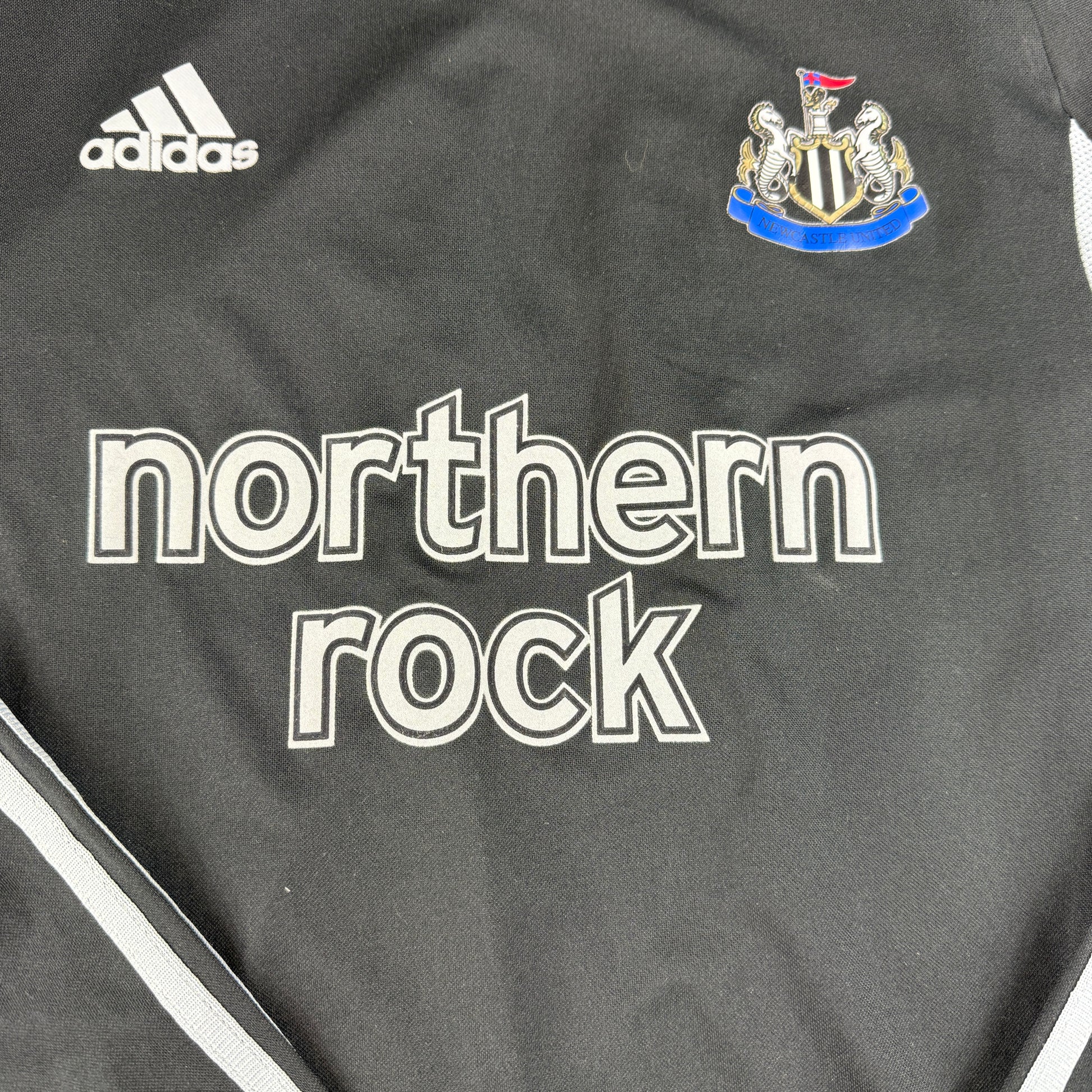 Shirt info: This is the Newcastle United home shirt from the 2003/2004 season. The Northern Rock sponsor is raised on the shirt. The Adidas logo and Newcastle United badge are printed.