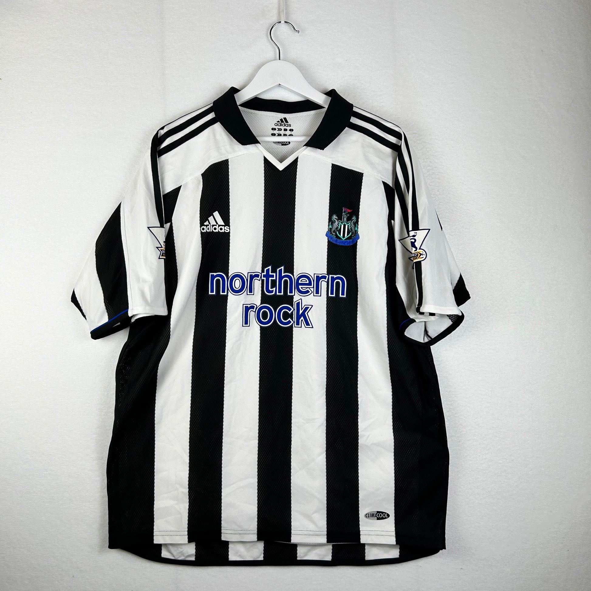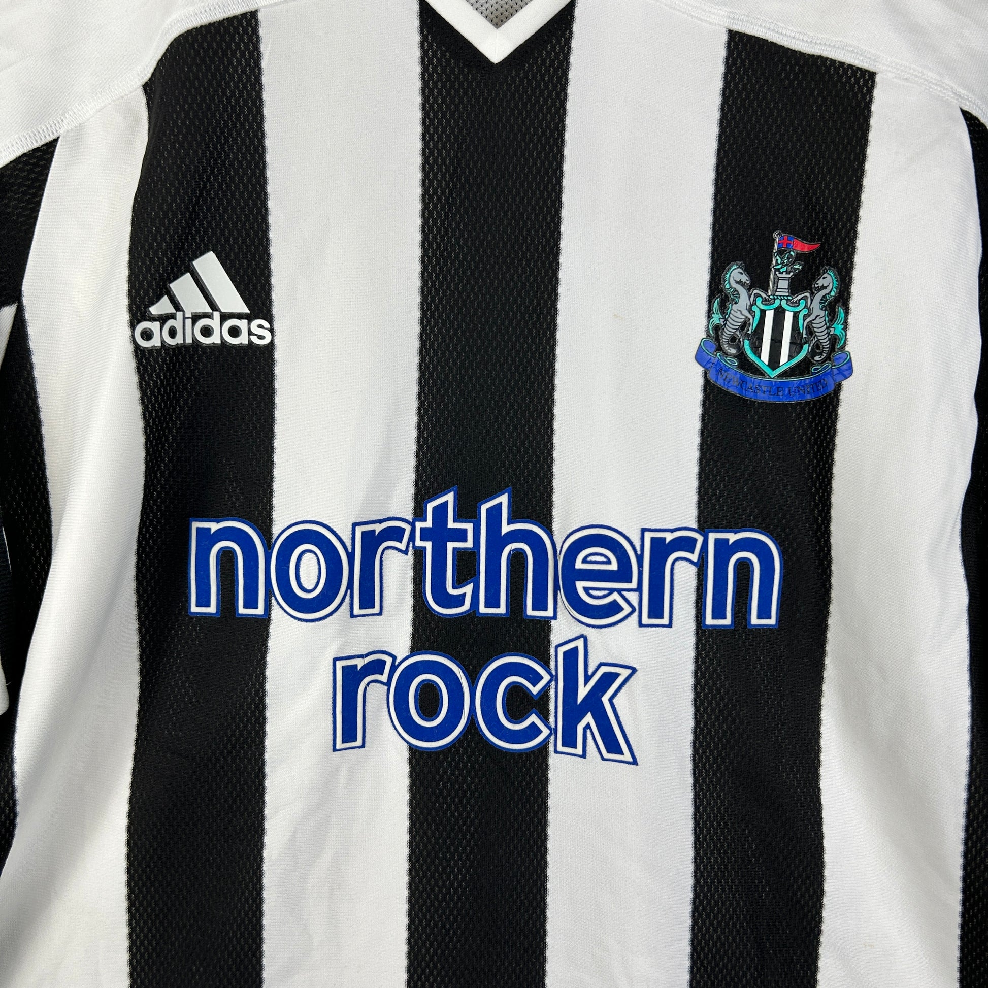Shirt info: This is the Newcastle United home shirt from the 2003/2004 season. The Northern Rock sponsor is raised on the shirt. The Adidas logo and Newcastle United badge are printed.