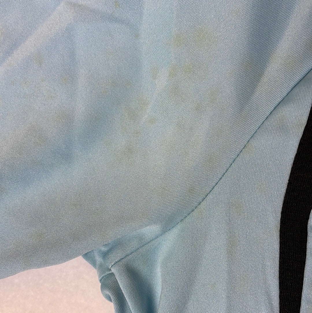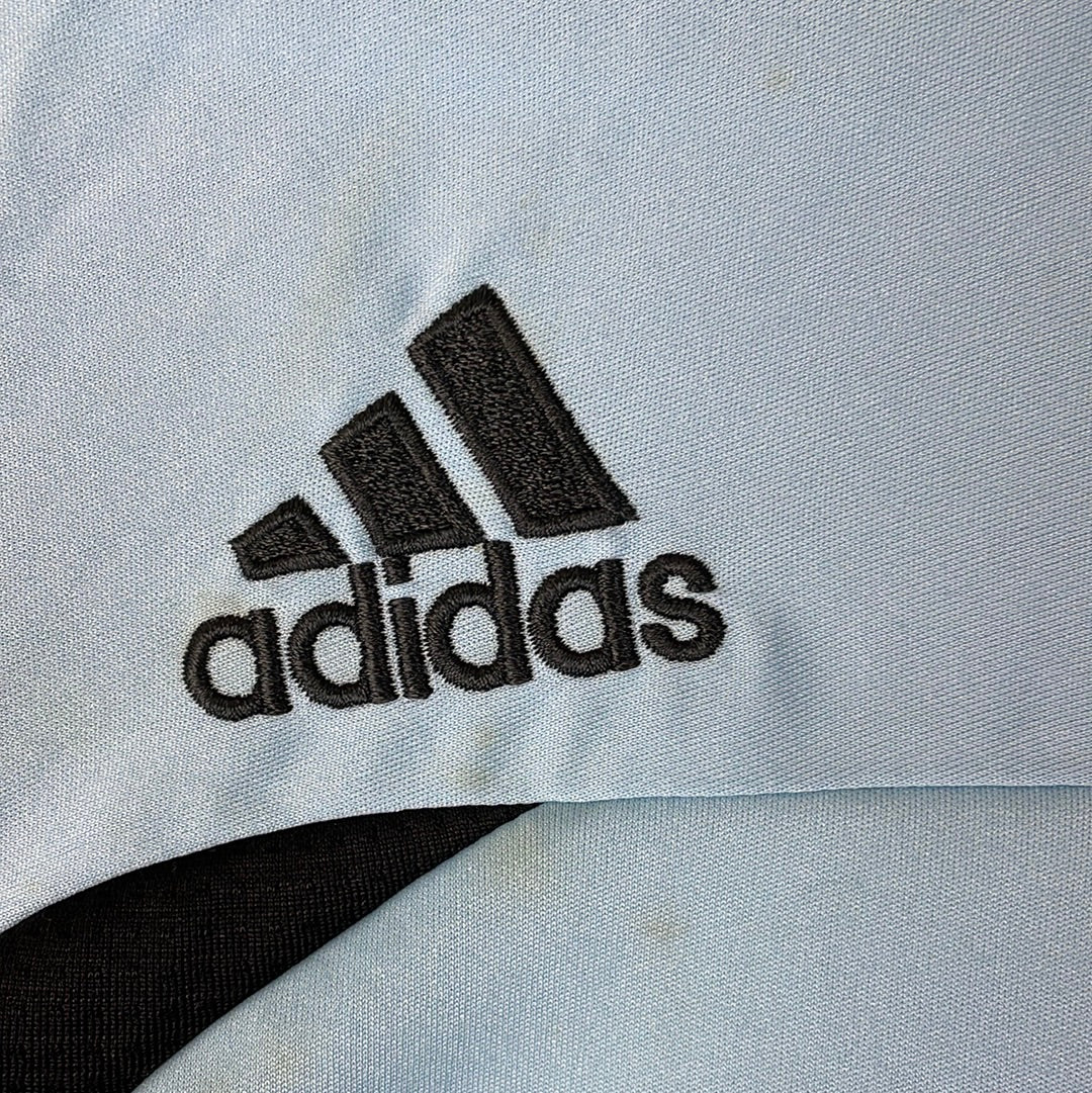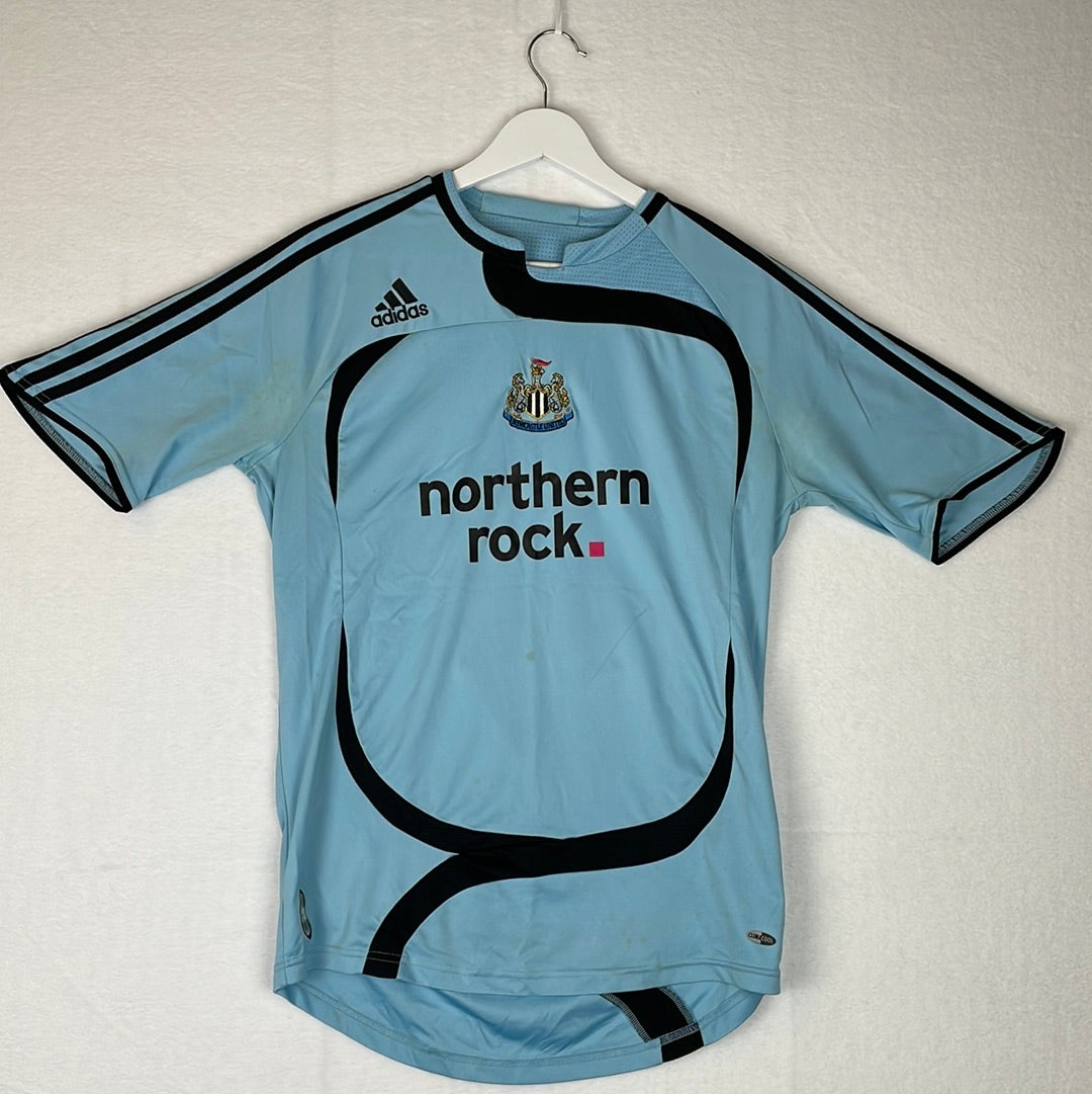 A distinctive light blue away shirt for Newcastle United in the 2007/2008 season. A common design from Adidas around this time.