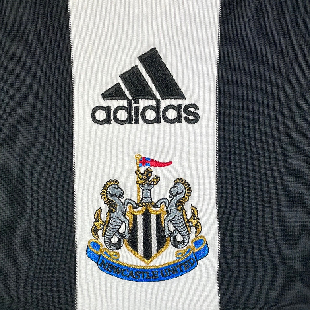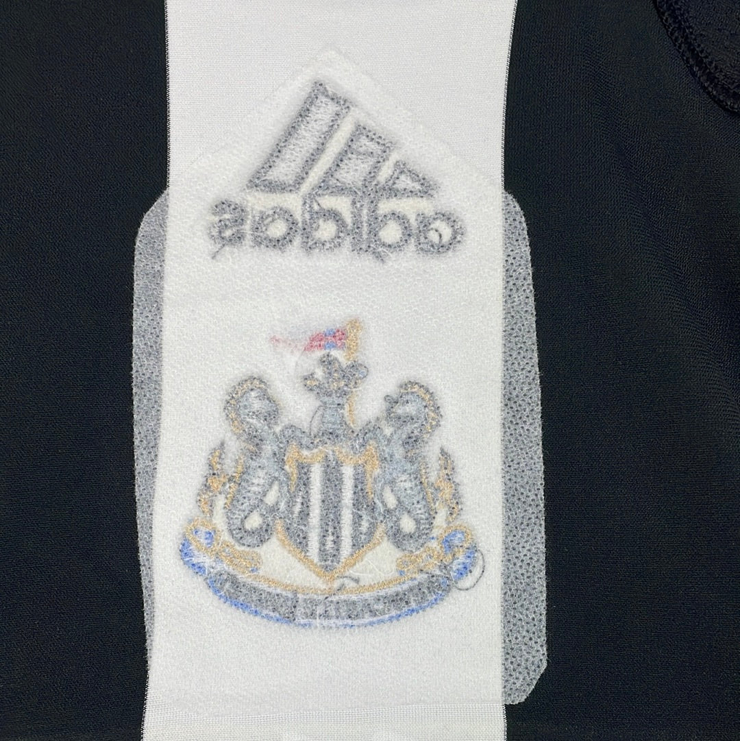 A player issued long sleeve home shirt for Newcastle United. This is a Formotion shirt that was made for the players. The Adidas logo and Newcastle badge are fully embroidered. The Adidas stripes have additional dots down the middle.