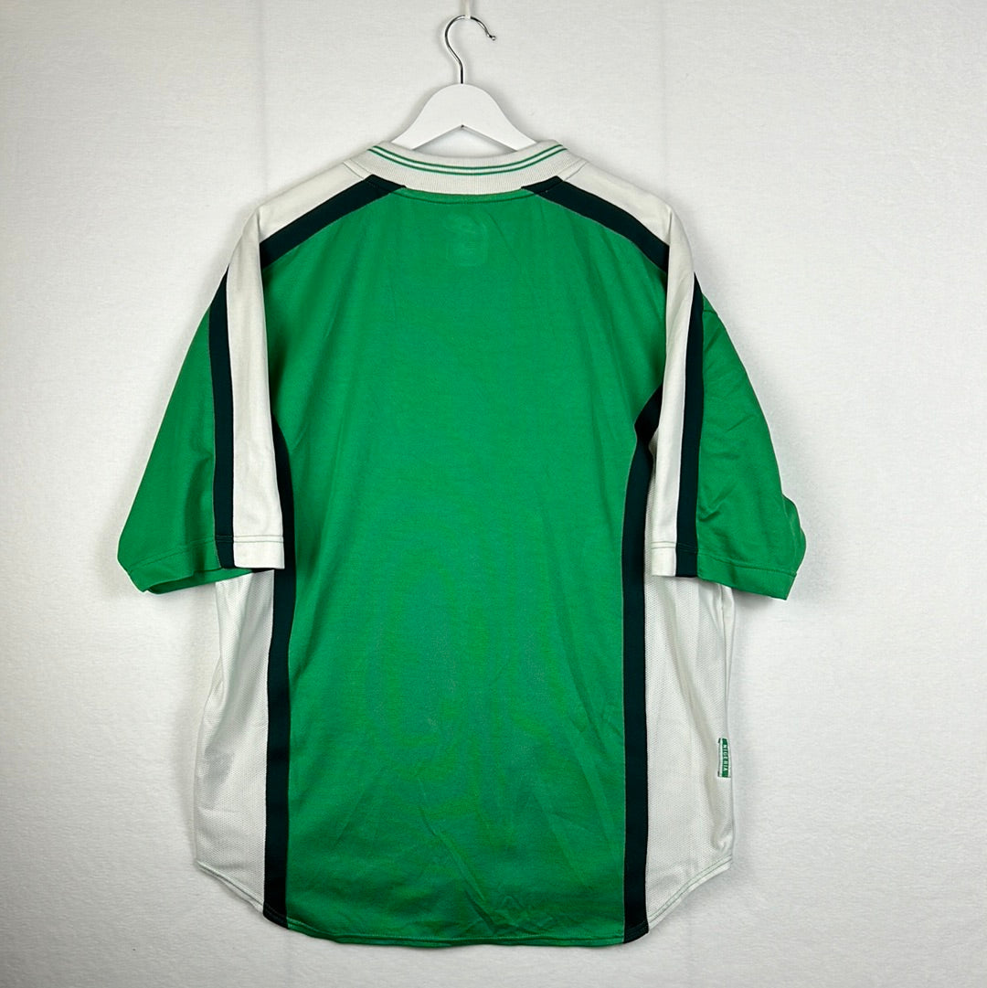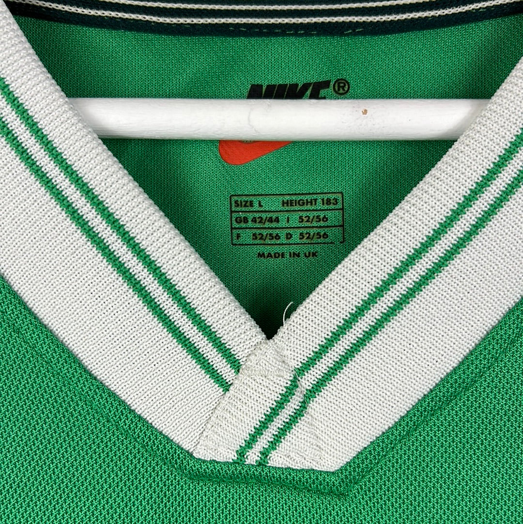 Shirt info:  The Nigeria 1998 football shirt is renowned for its iconic design and the memorable performance of the Nigerian national team during the 1998 FIFA World Cup. As far as Nigerian shirts go this is a rather plain template from Nike and lacks some design styles of the more modern Nike shirts.