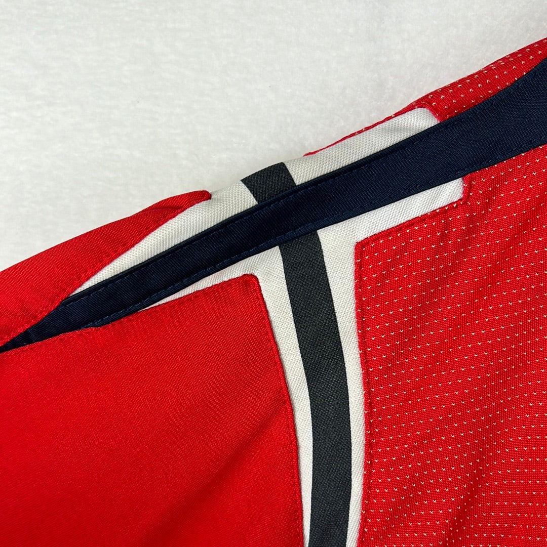 Shirt info: The home shirt for Norway in 2003 and 2004. This was used as a template from Umbro at this time with Enlgnd having a very similar shirt at the same time. This shirt is not reversible.