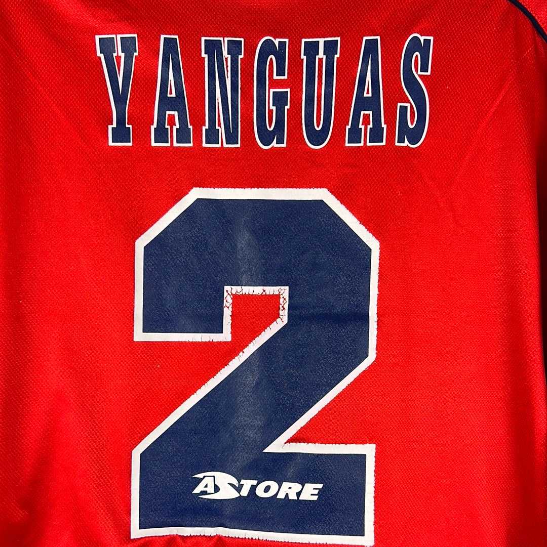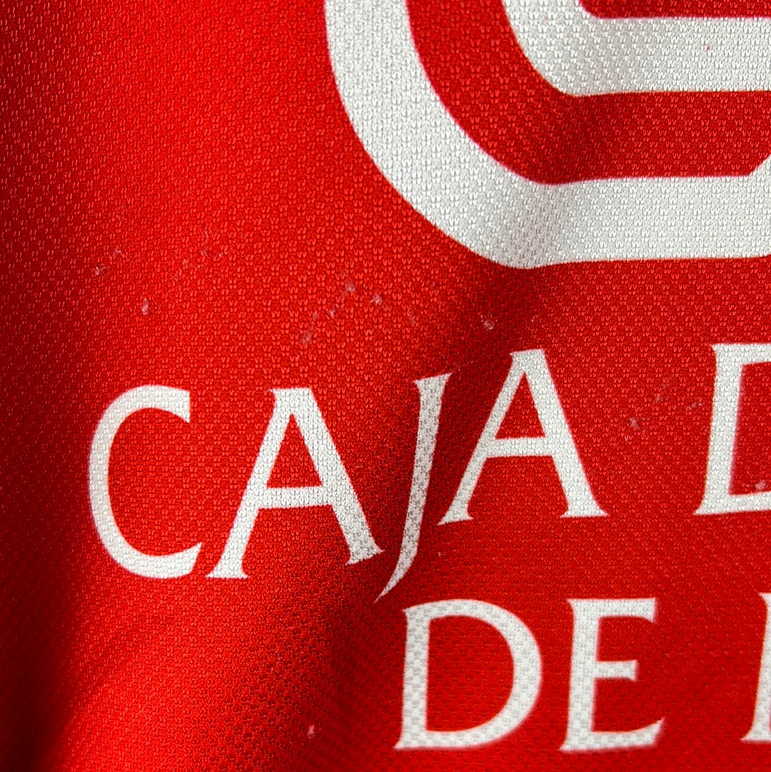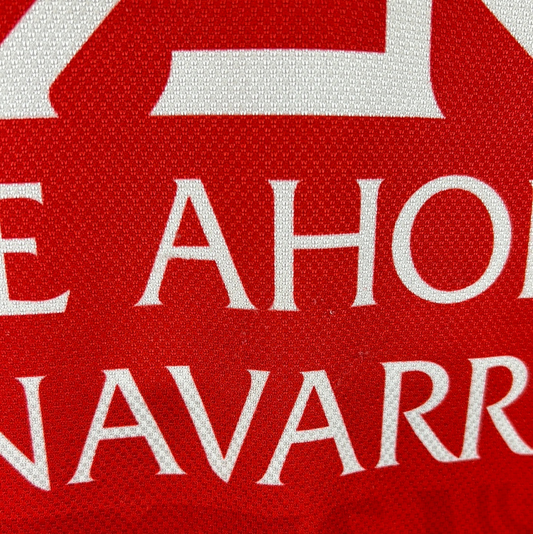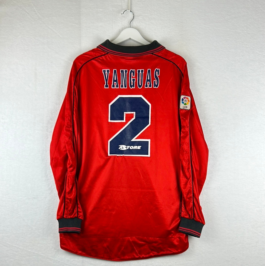 Shirt info: The long-sleeve home shirt was player issued to Yanguas for the home quarter final Copa Del Rey match vs FC Barcelona on 9.2.2000 which they lost 0-4. The shirt features an embroidered Osasuna badge and the white 'Caja de Ahorros de Navarra' sponsor is in the material. It has a small felt LFP badge on the sleeve. 'Yanguas 2' is printed on the back in blue. This is a long-sleeve football shirt.