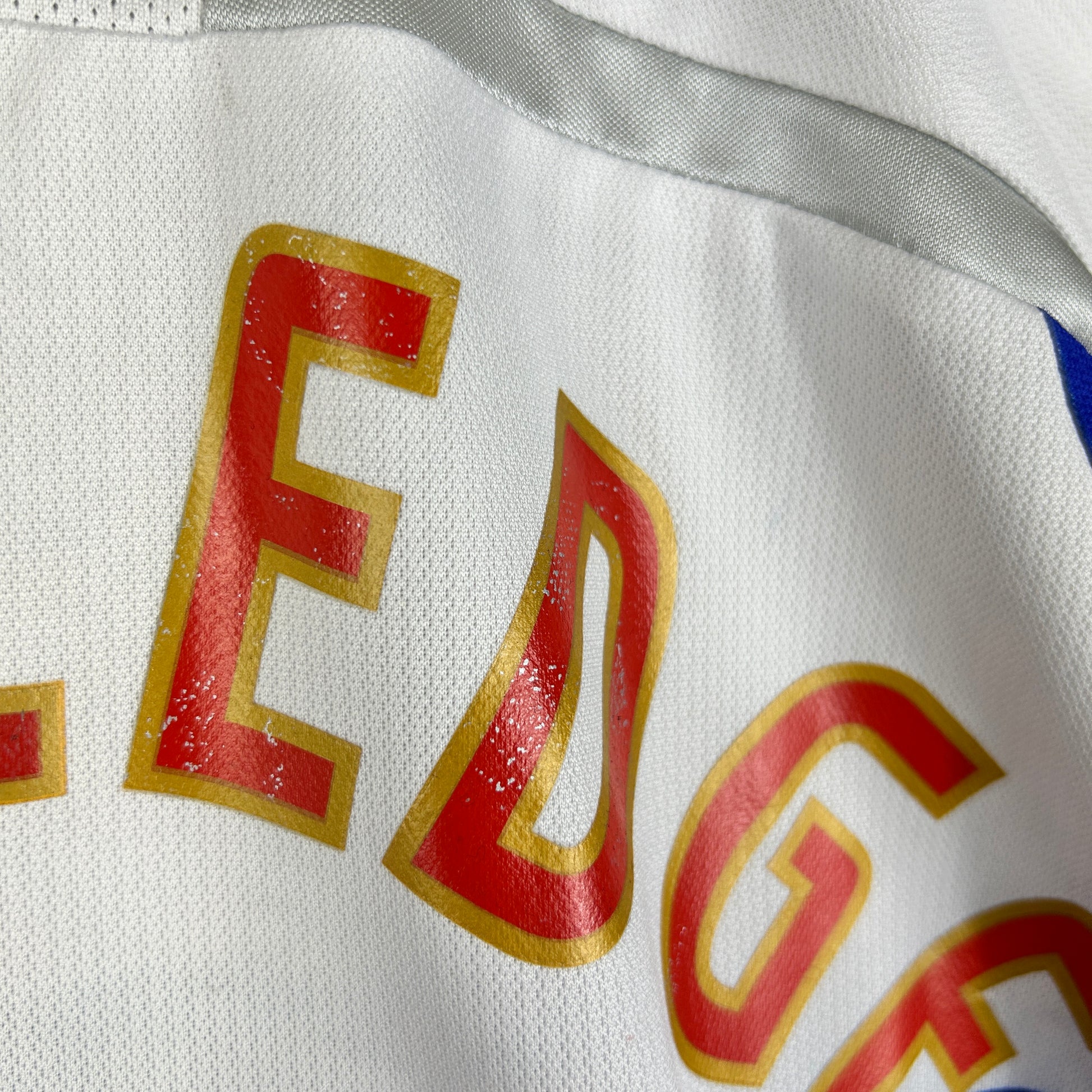 Condition Details: The shirt is in good condition. There is an odd mark and some light cracking to the name and number print.