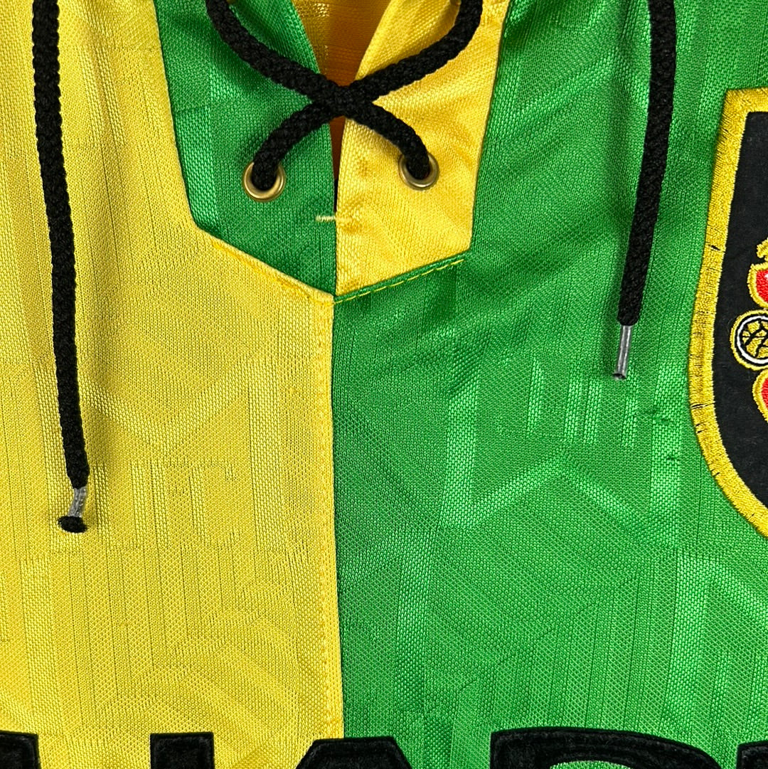 Green and gold have become a mark of tradition for United fans. This is an excellent shirt from the 1992/1993 season and 1993/1994 season.