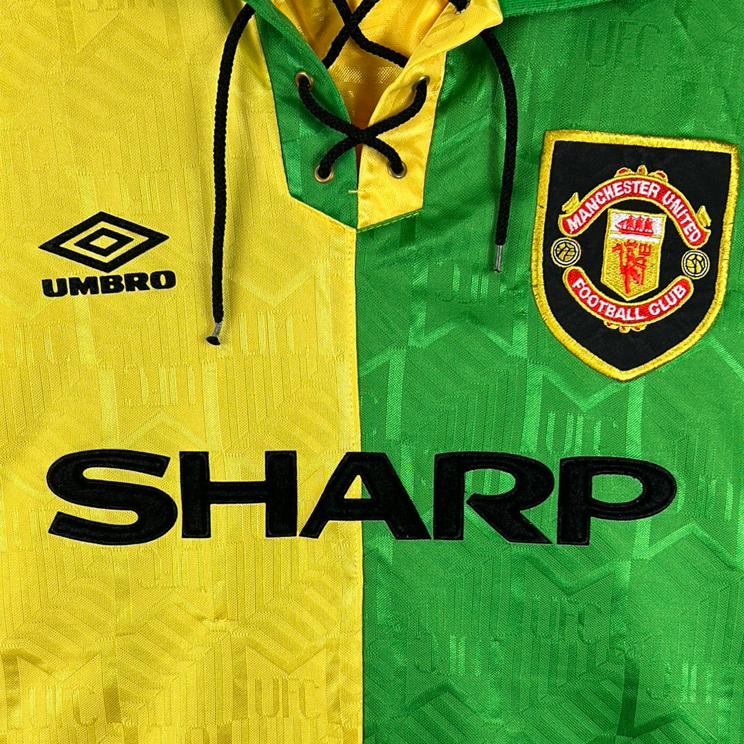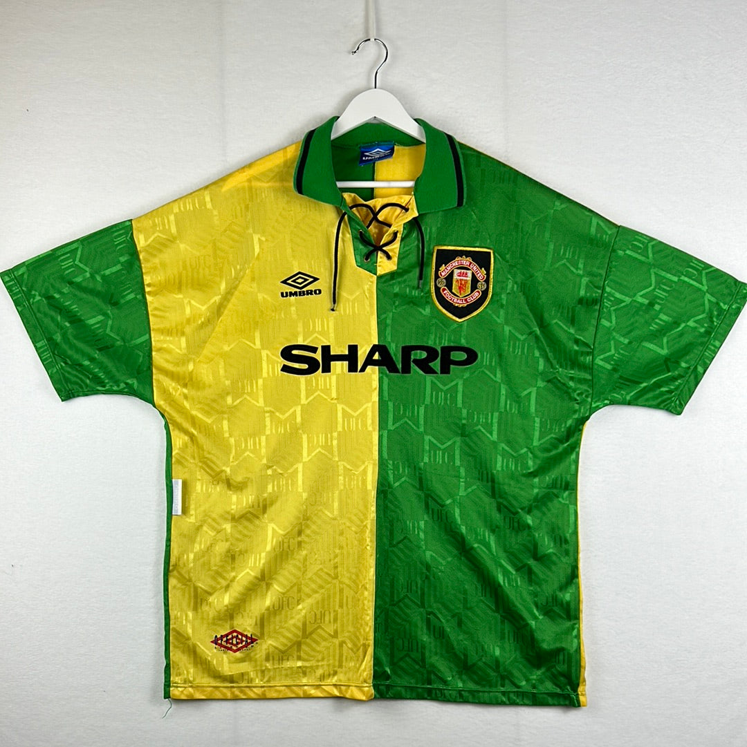 Shirt info: Green and gold - a true classic shirt. The third shirt for Manchester United in the 1992/1993 season and the 1993/1994 season.