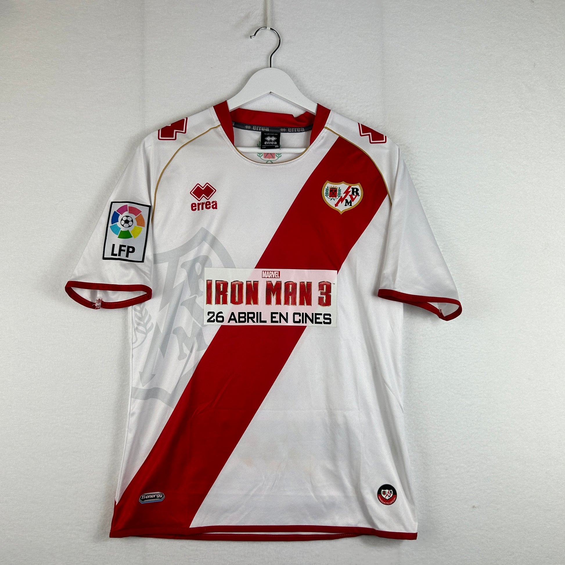 Shirt info: The 2012/2013 home shirt for Rayo Vallecano with front Iron Man 3 film sponsorship.