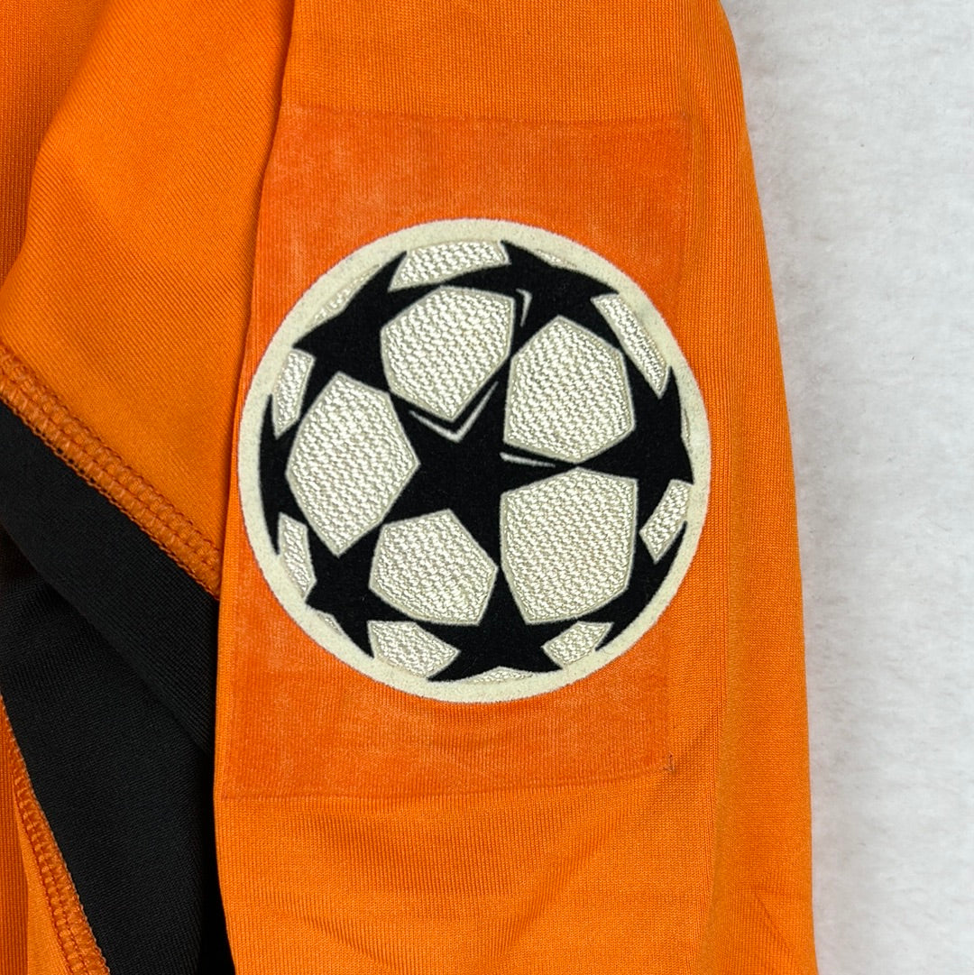 Player Issue Details: Original player issue shirt. The Kappa logos and Real Betis badge are fully embroidered. The sponsor is heat printed on. The Champions League sleeve badge is heat-pressed. The shirt came to me as worn v Chelsea in the Champions League on 1/11/2005. Betis won the match 1-0. There are no distinguishing features to match this game.