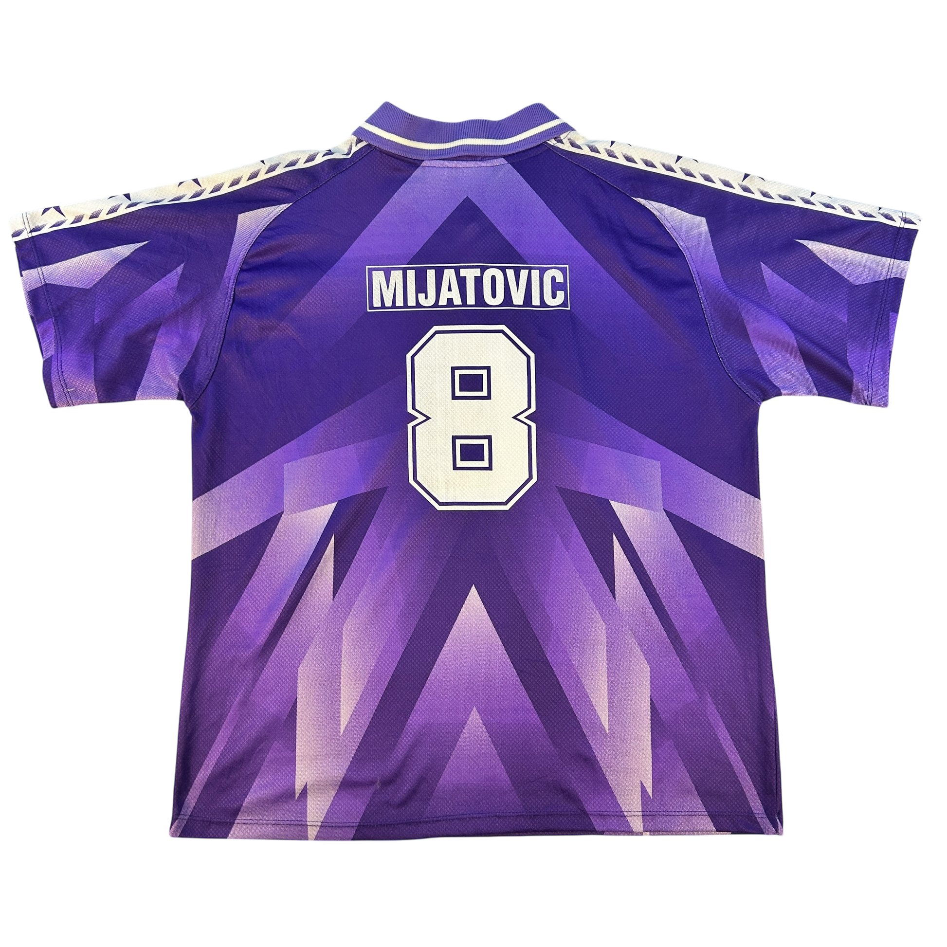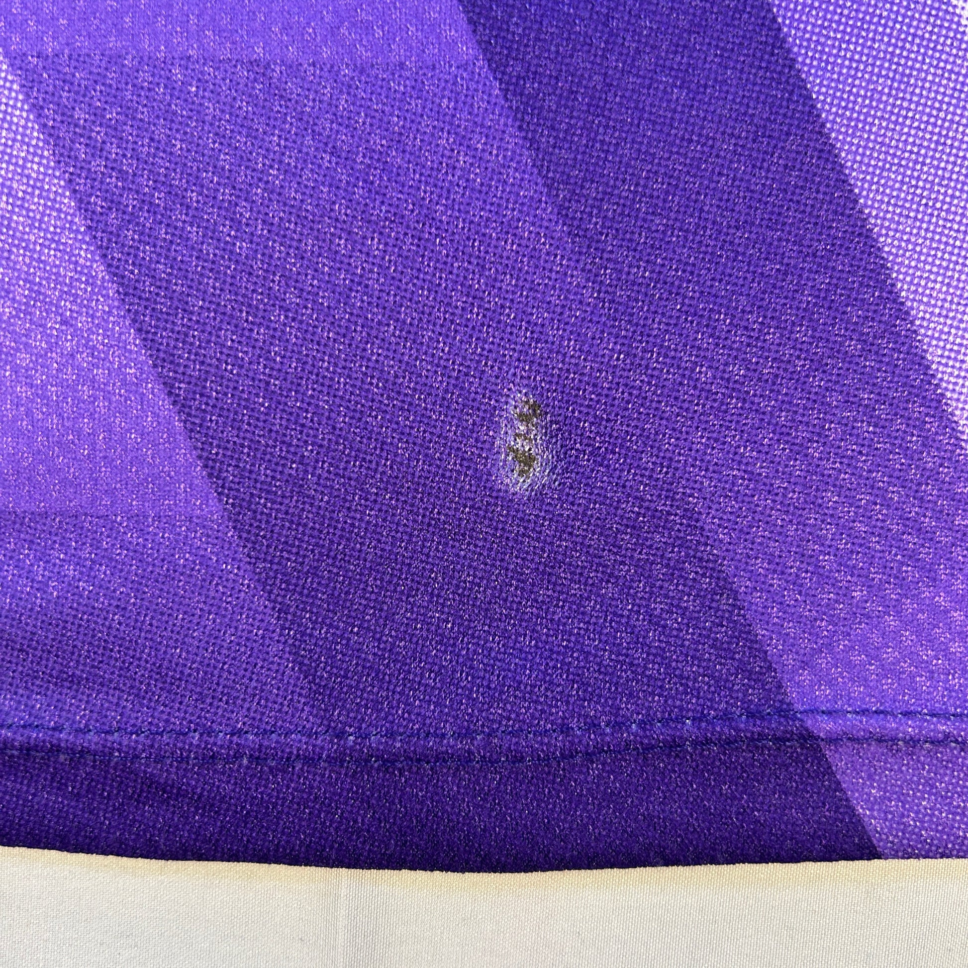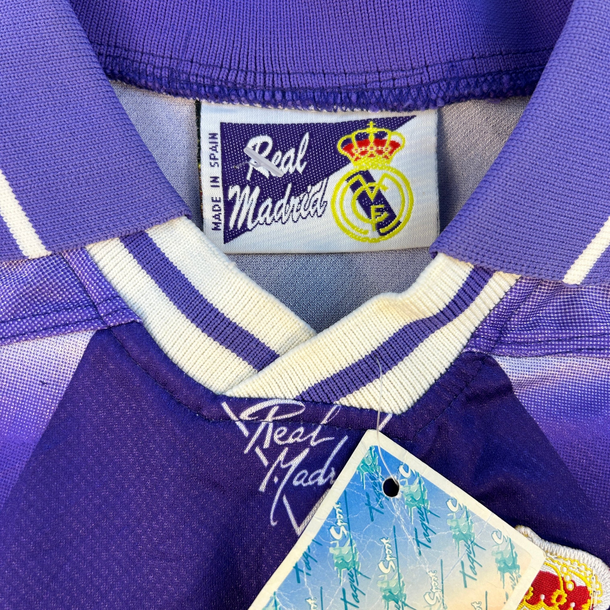 Shirt info: The away shirt for Real Madrid. This was the first time Madrid had gone from a blue-away kit to purple. This colour has been re-done a few times since and is always a good look for the Madrid away.