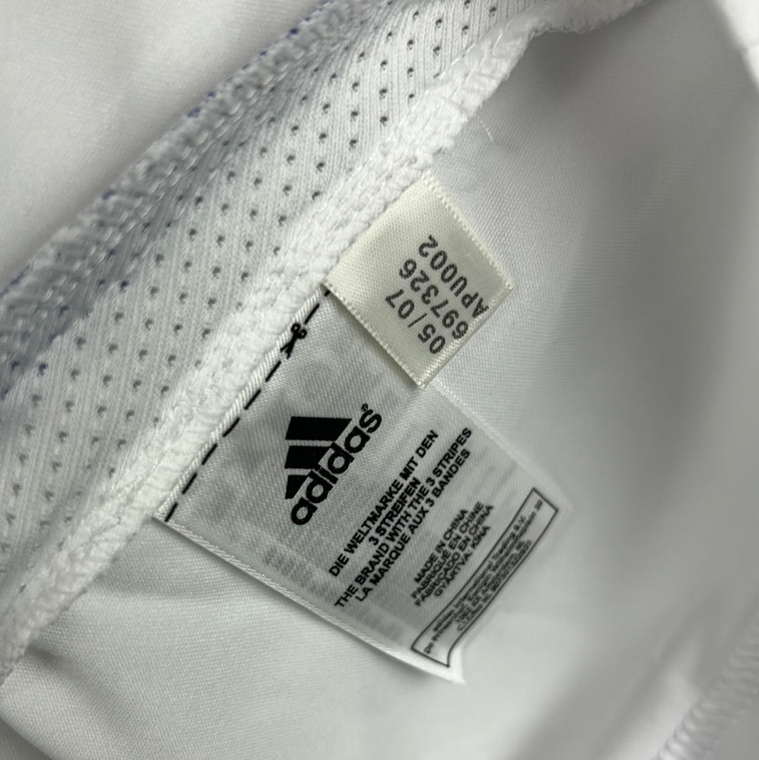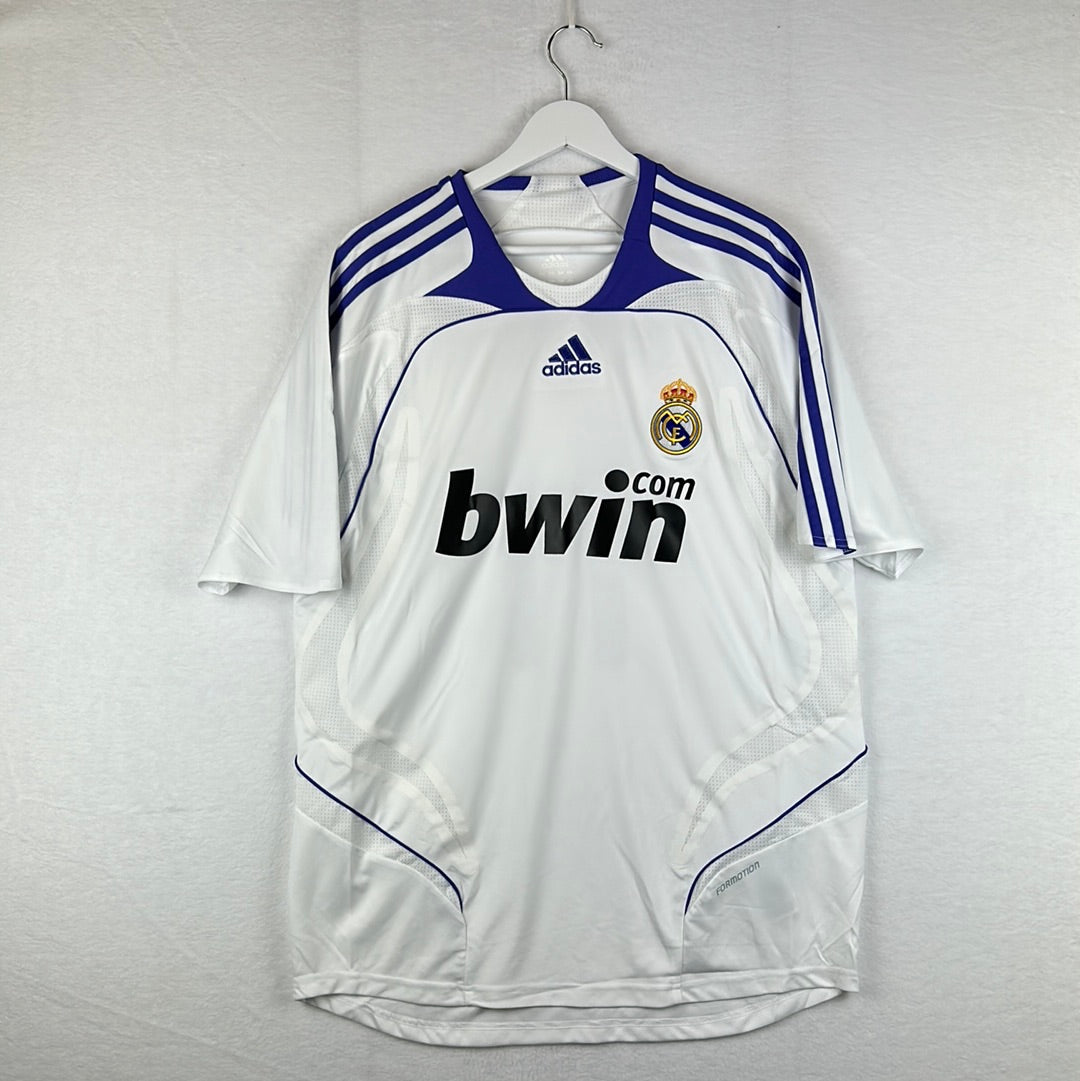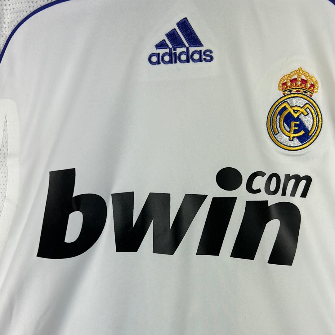 Shirt info: The Real Madrid home shirt in the 07/08 season. A white shirt with purple trim and a Bwin sponsor.