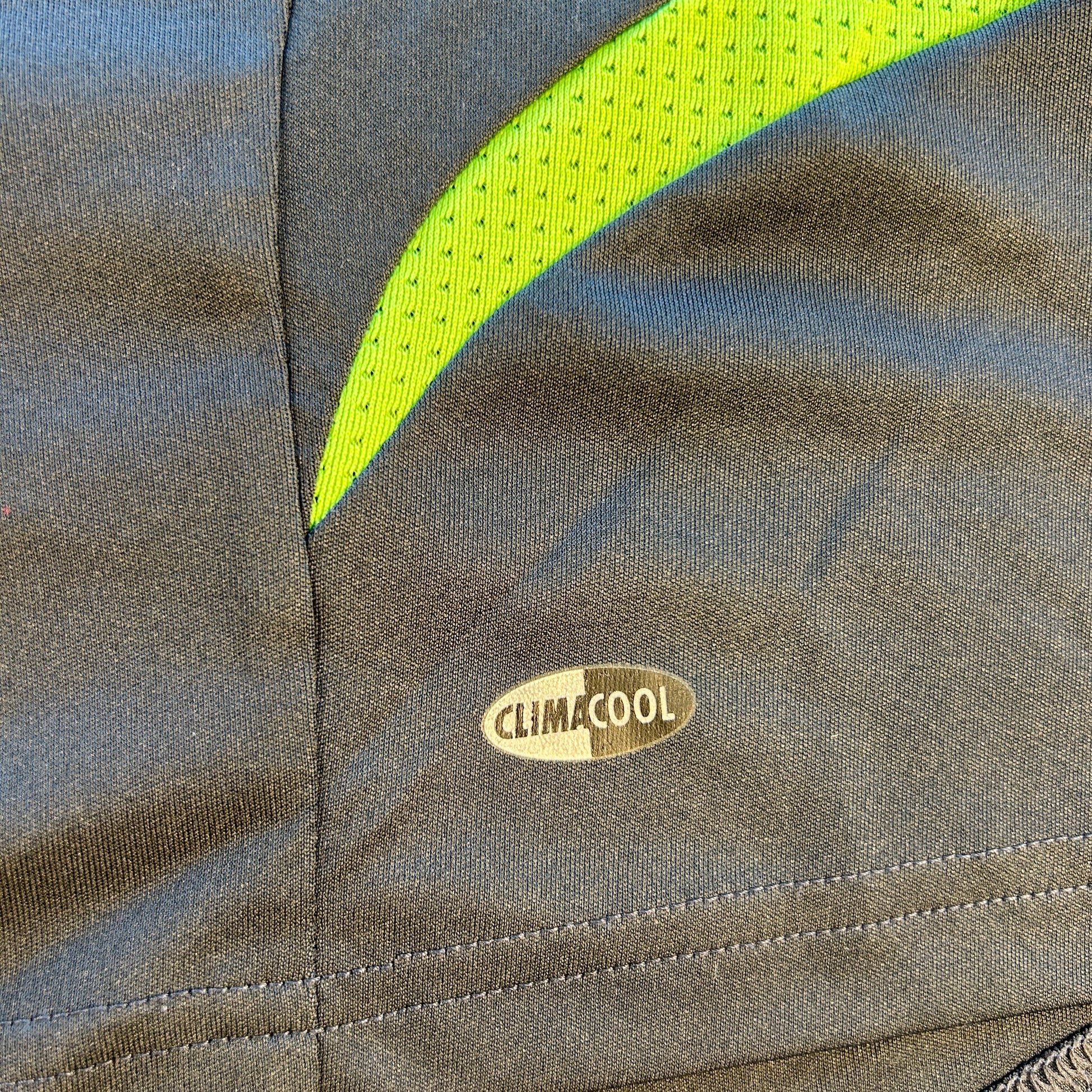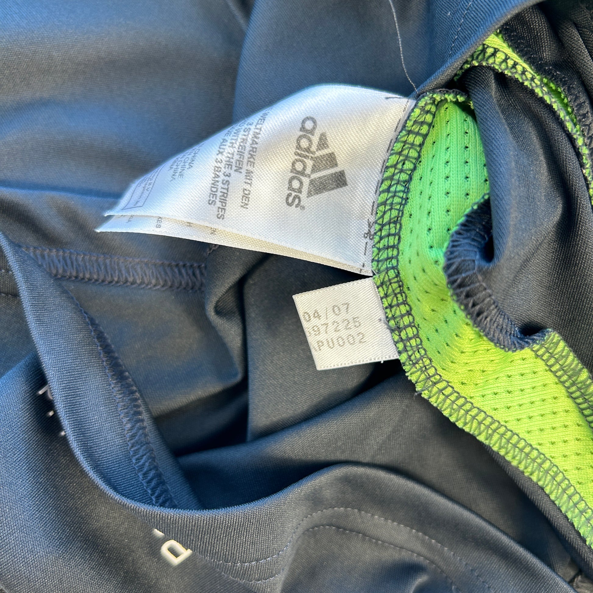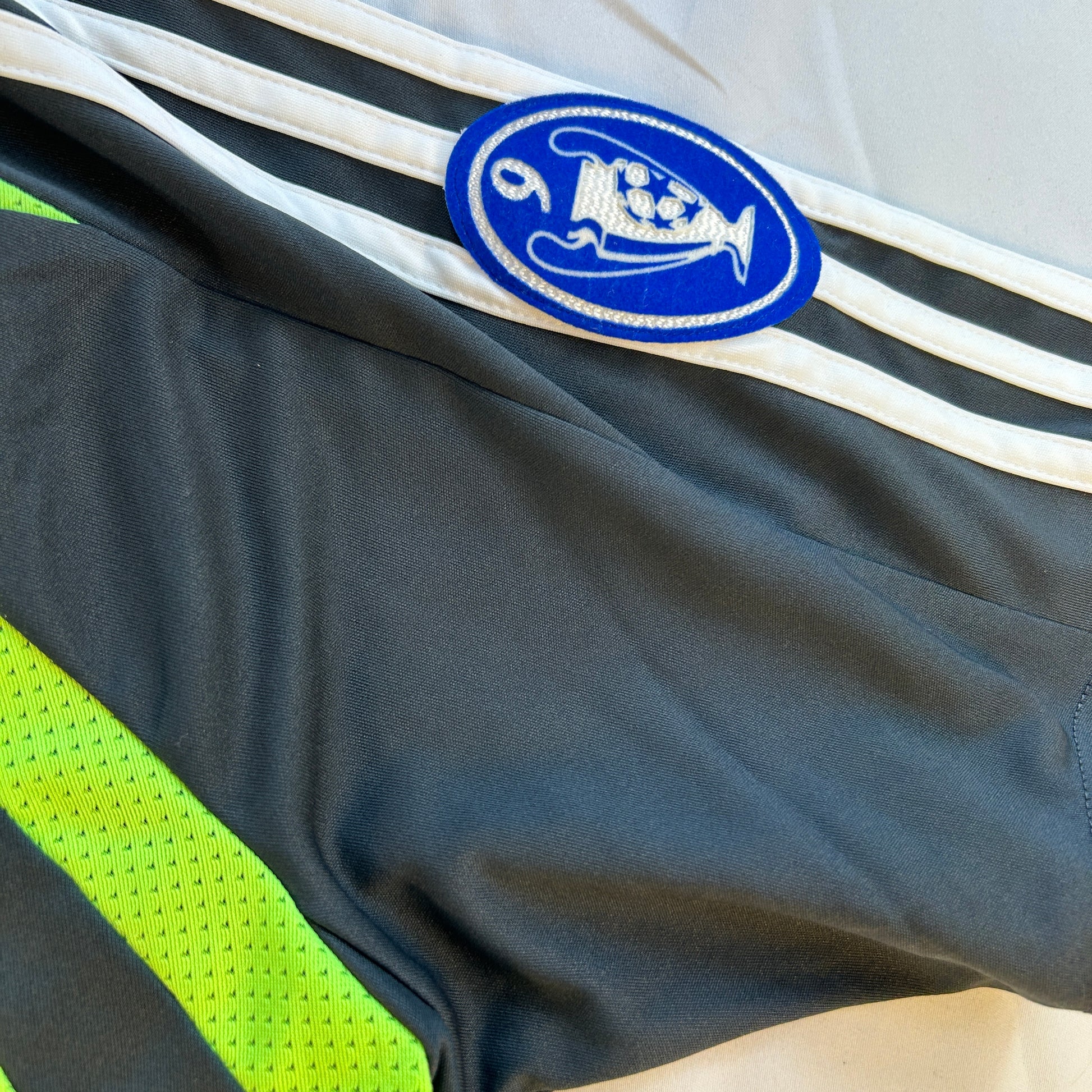 Shirt info: The Real Madrid 2007-2008 third shirt with Champions League star ball patch and the 'x9 times Champions League winners' patch on the sleeves. This green and neon green shirt has the typical Adidas design from the mid-naughties with the Adidas logo centered. The Real Madrid badge and Adidas logo are embroidered, and the 'BWIN.com' sponsor is printed.