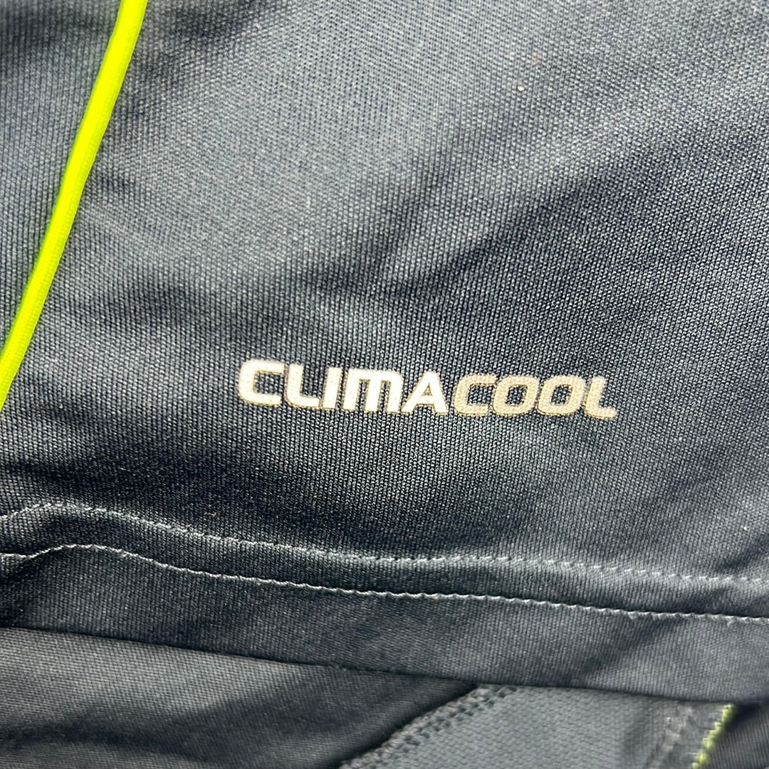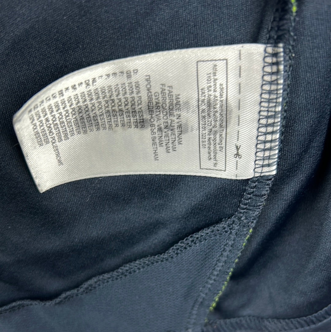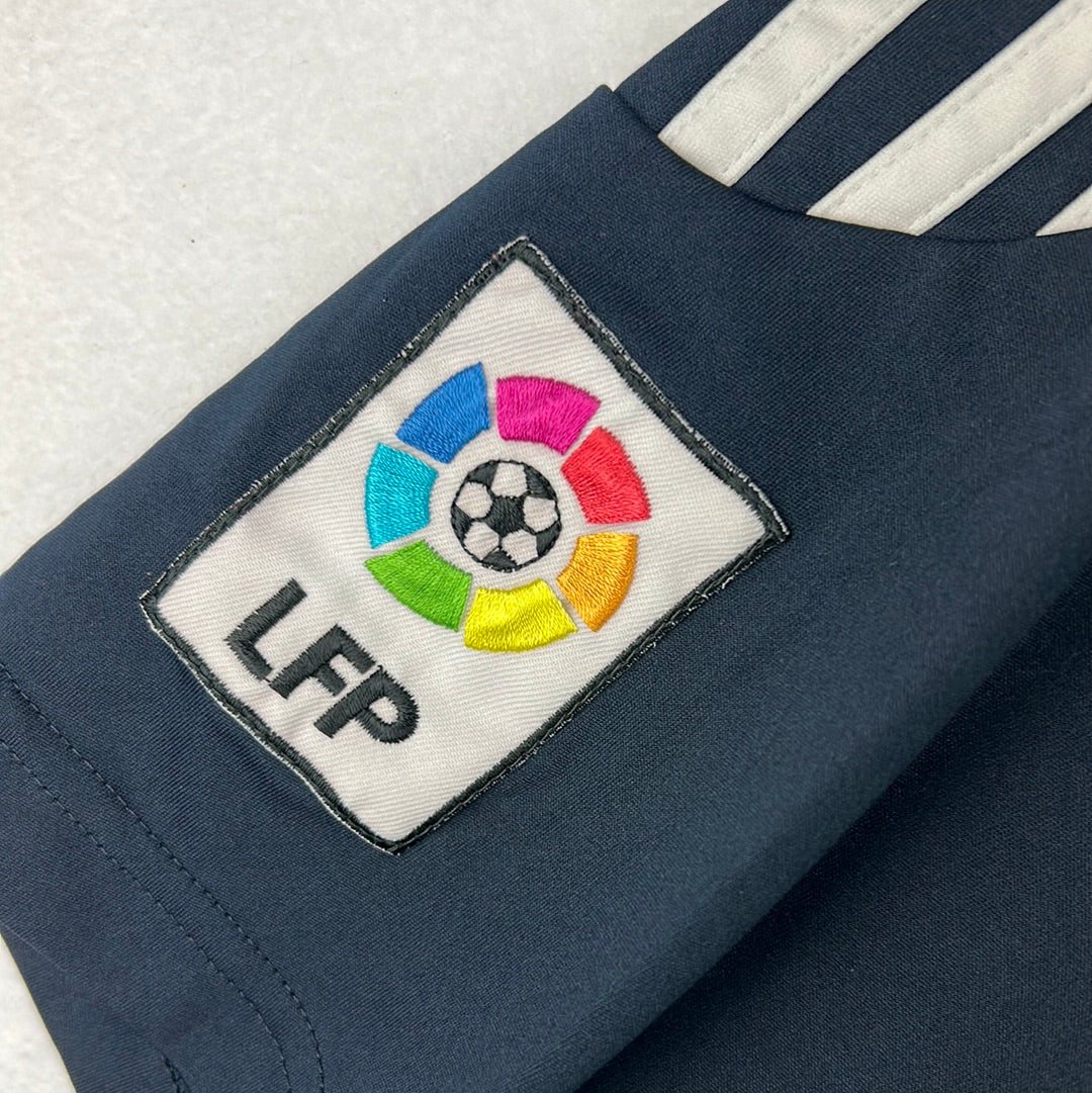 Shirt info: The Real Madrid 2010-2011 third shirt. This midnight shirt features neon green detailing on the neck and side panels with the white 3-stripe pattern on the sleeves, as Adidas started to switch their look for the 2010s. The Real Madrid badge and Adidas logo are embroidered. The 'BWIN.com' sponsor is printed.