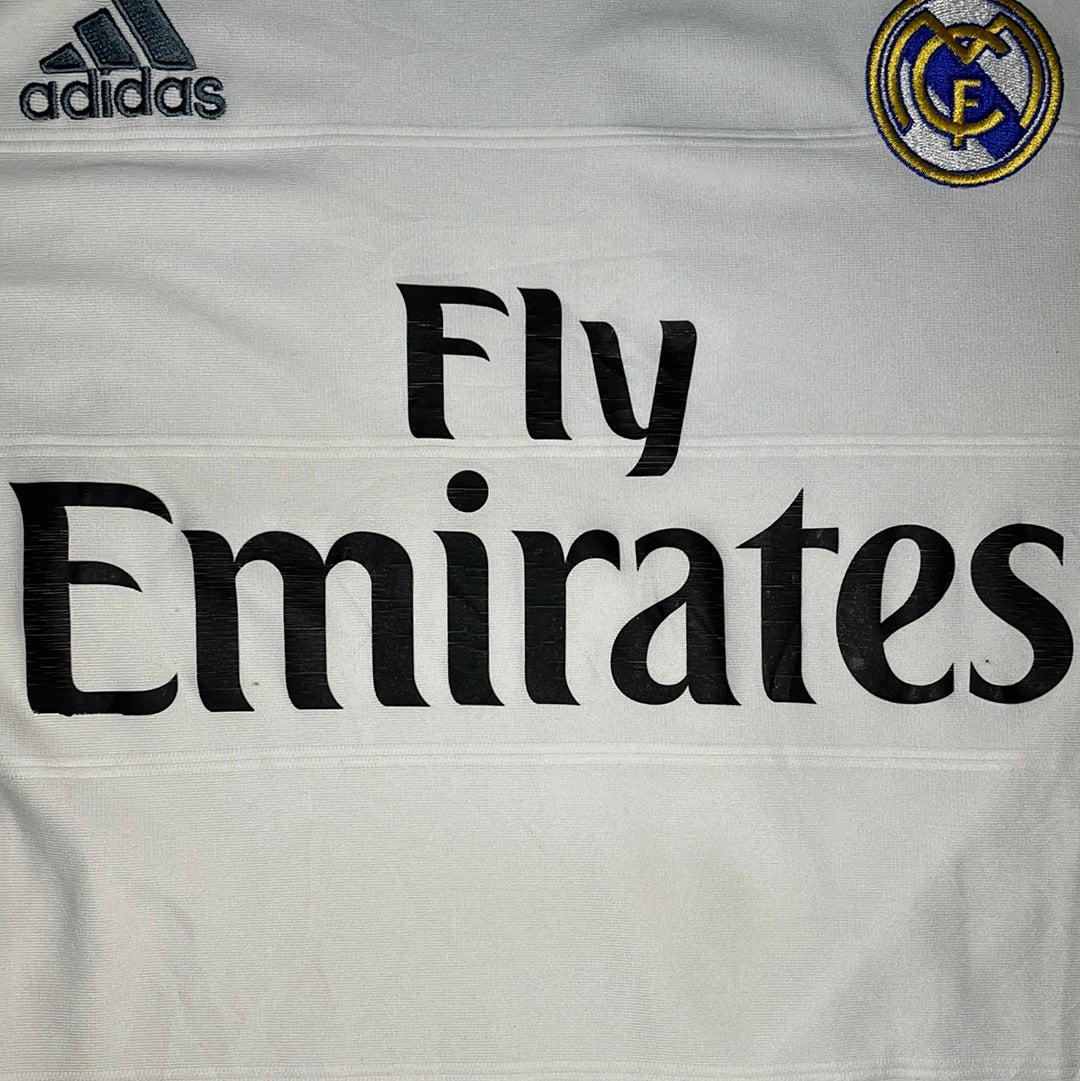 Shirt info: What a shirt, the 13/14 home shirt in a long sleeve with the goat print. This type of font is an iconic look for Real Madrid.