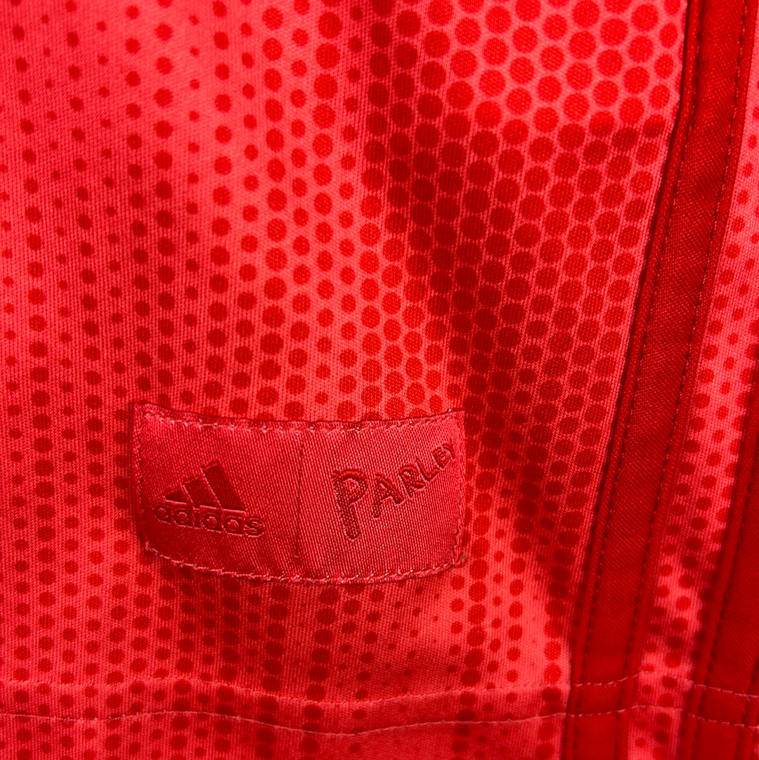 Shirt info: The Adidas Real Madrid 2018-2019 third kit introduces a bright and eye-catching look, created as part of the 3 Stripes' ongoing collaboration with Parley, a company that specialises in the recycling of ocean waste. The shirt features; a plastic Real Madrid logo, an embroidered Adidas logo, and a vinyl 'Fly Emirates' sponsor.