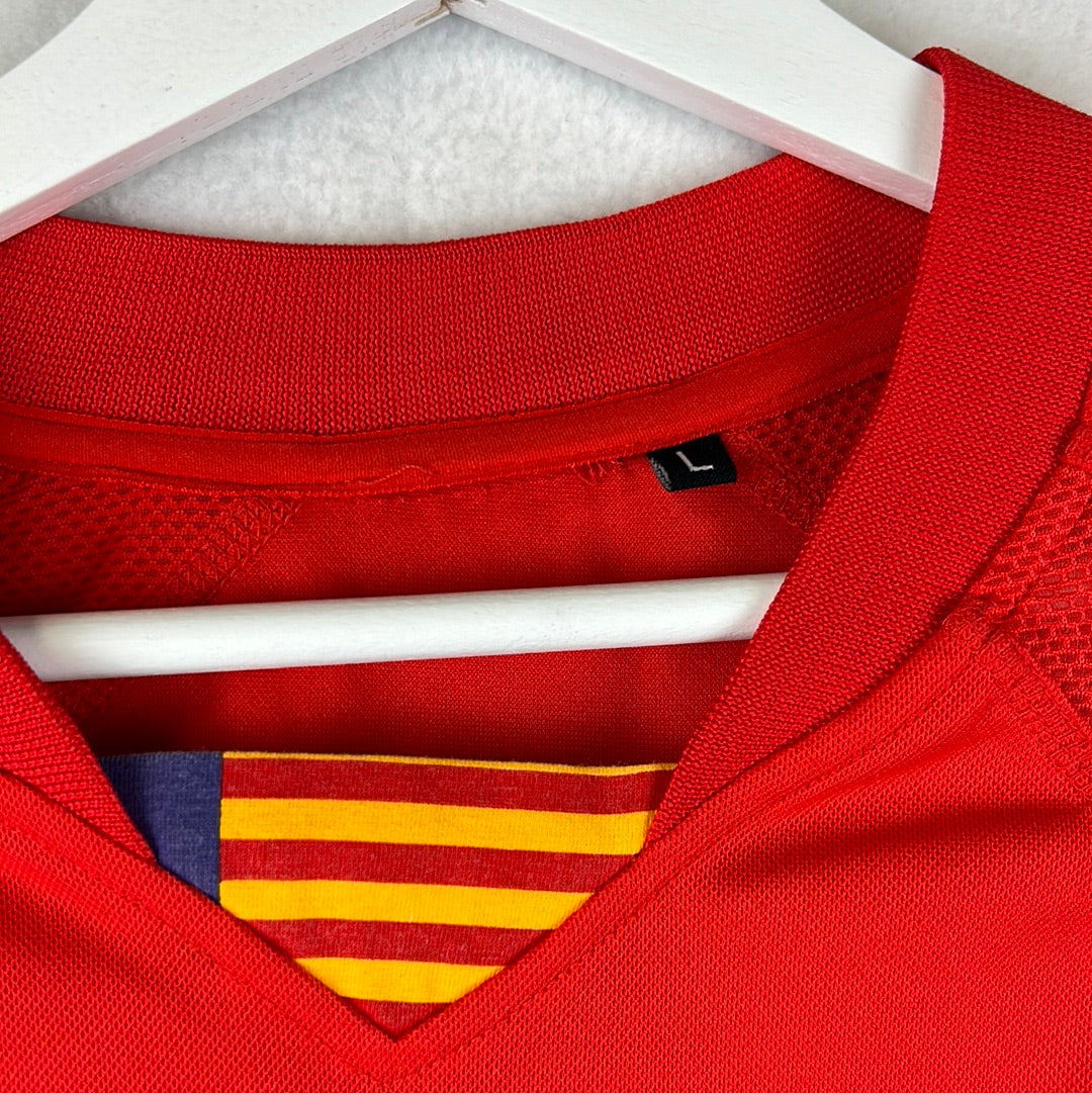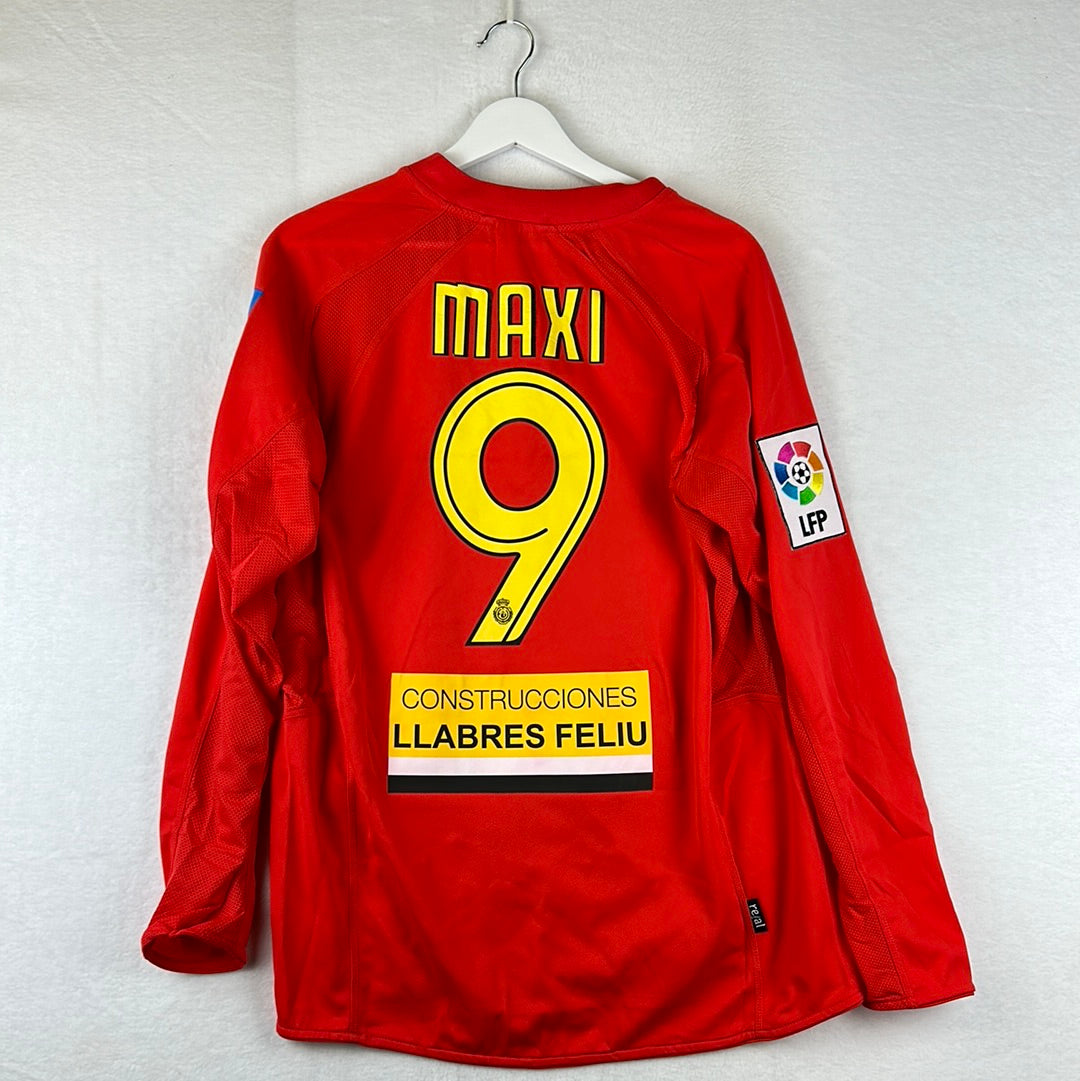 Shirt info: The in-house red home shirt worn by Real Mallorca during the 2006-2007 La Liga campaign. This specific shirt was issued to Maxi in the home match vs Barcelona which they lost 1-4 on 19/11/2006. The red shirt features an embroidered Real Mallorca badge, and a printed 'Viajes Iberia'. This is a long-sleeved shirt with 'Maxi 9' printed in yellow and black font on the back.