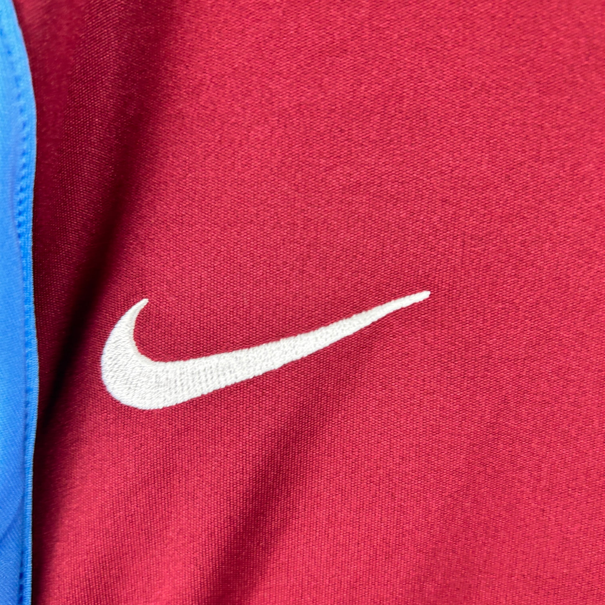 Player Issue Details: The shirt is a Nike shirt with player-sized prints and sleeve patches.