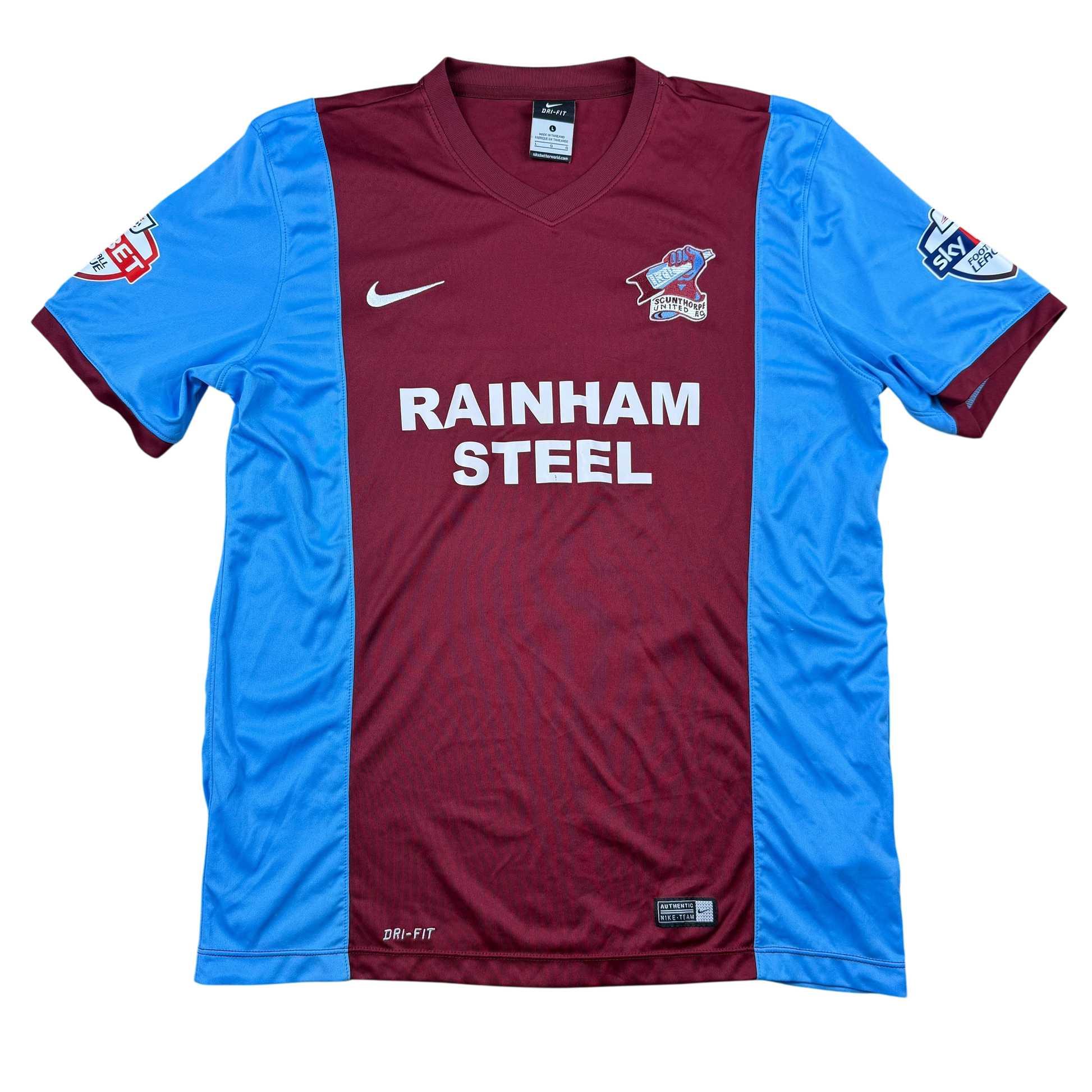 Shirt info: The Scunthorpe United home shirt in the 14/15 season. The shirt is sponsored by long-term sponsor Rainham Steel.