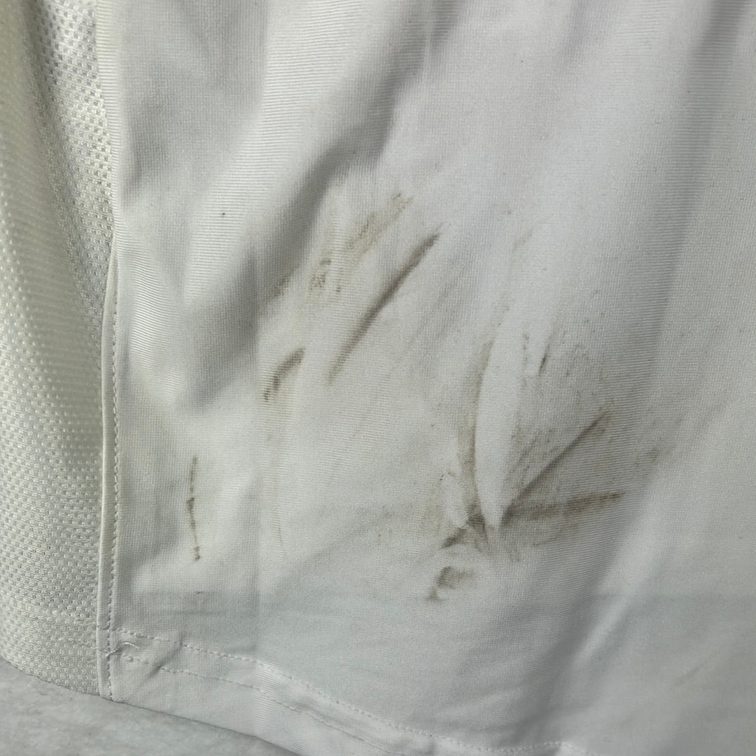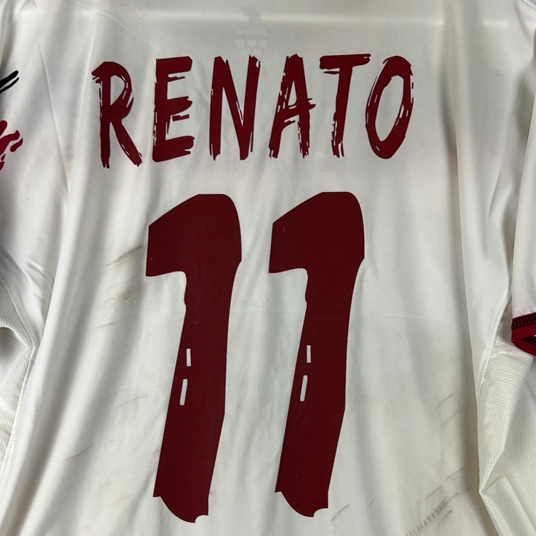 Condition Details: The shirt is in match worn and unwashed condition. There are dirt marks around the neck and marks on the back. The shirt has a strong smell of sweat. Looking at the photos of the game it was from Renato was dripping in sweat.