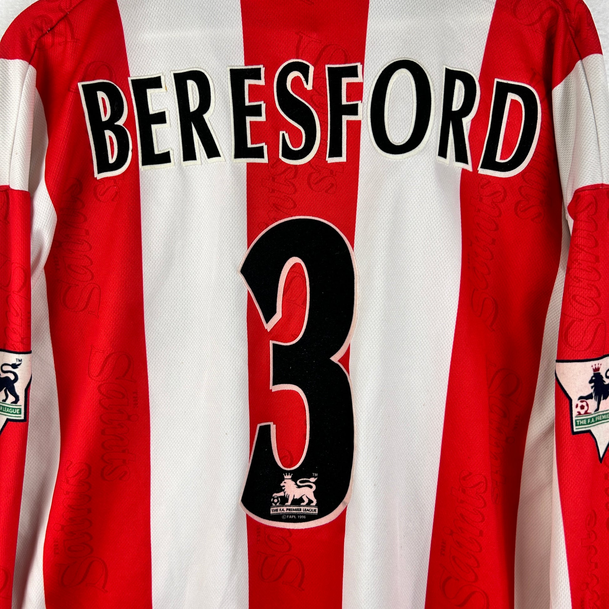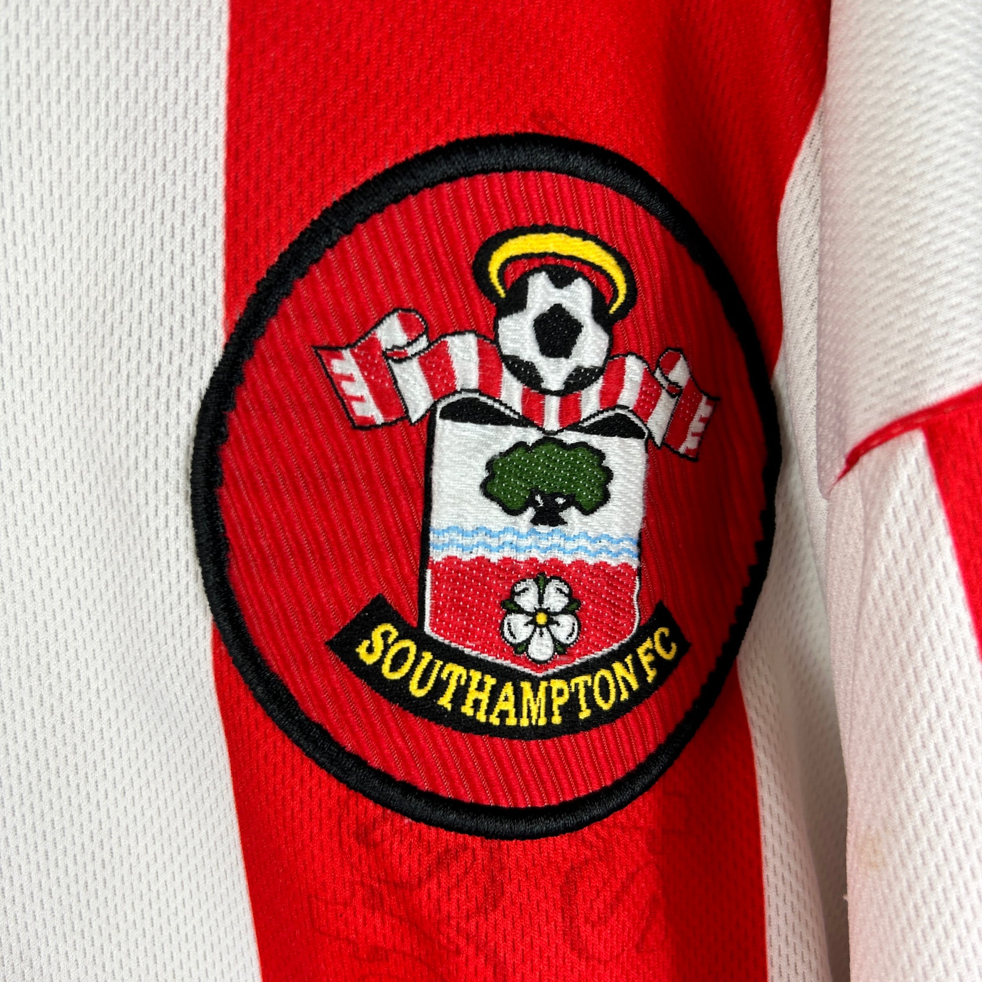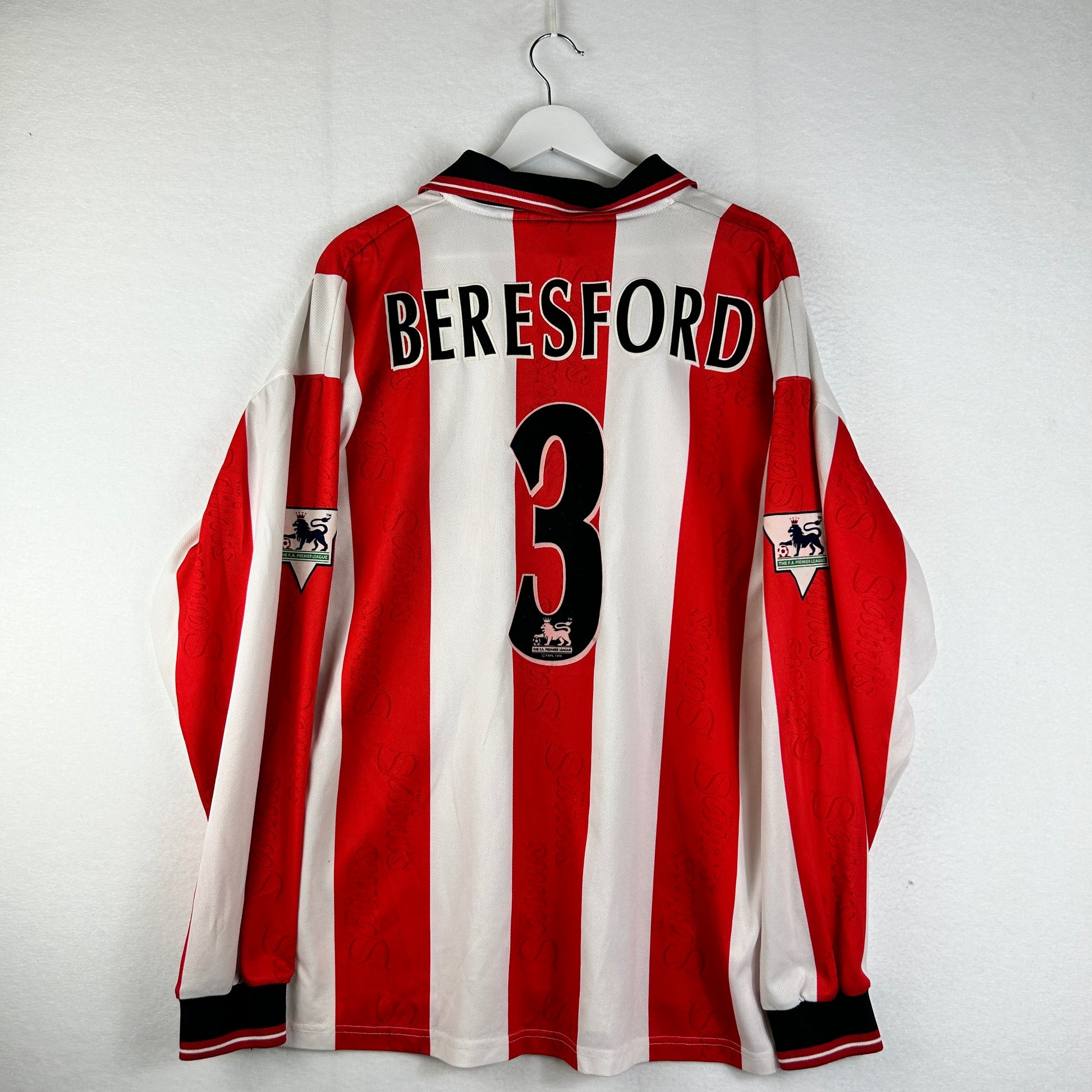 Player Issue Details: This is a Southampton shirt from 1998/1999. It has the player-sized print for Beresford 3. During this period, there was no difference between the player shirts and the replica shirts.