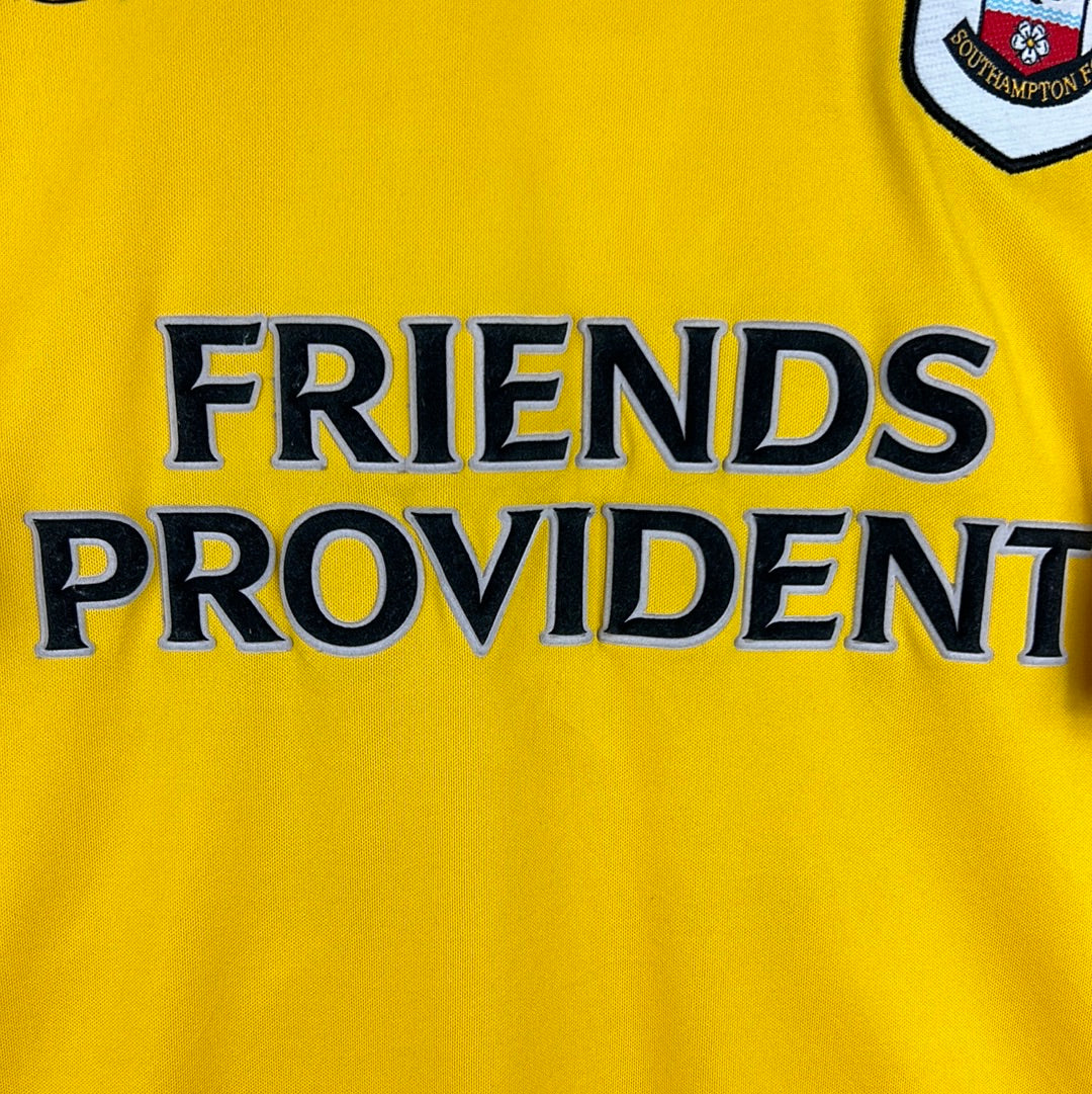 Shirt info: The Southampton away shirt for the 2004/2005 season and the 2005/2006 season was produced in-house for Southampton and is sponsored by Friends Provident. The 05/06 season was the last of this sponsorship before airline Flybe replaced them.