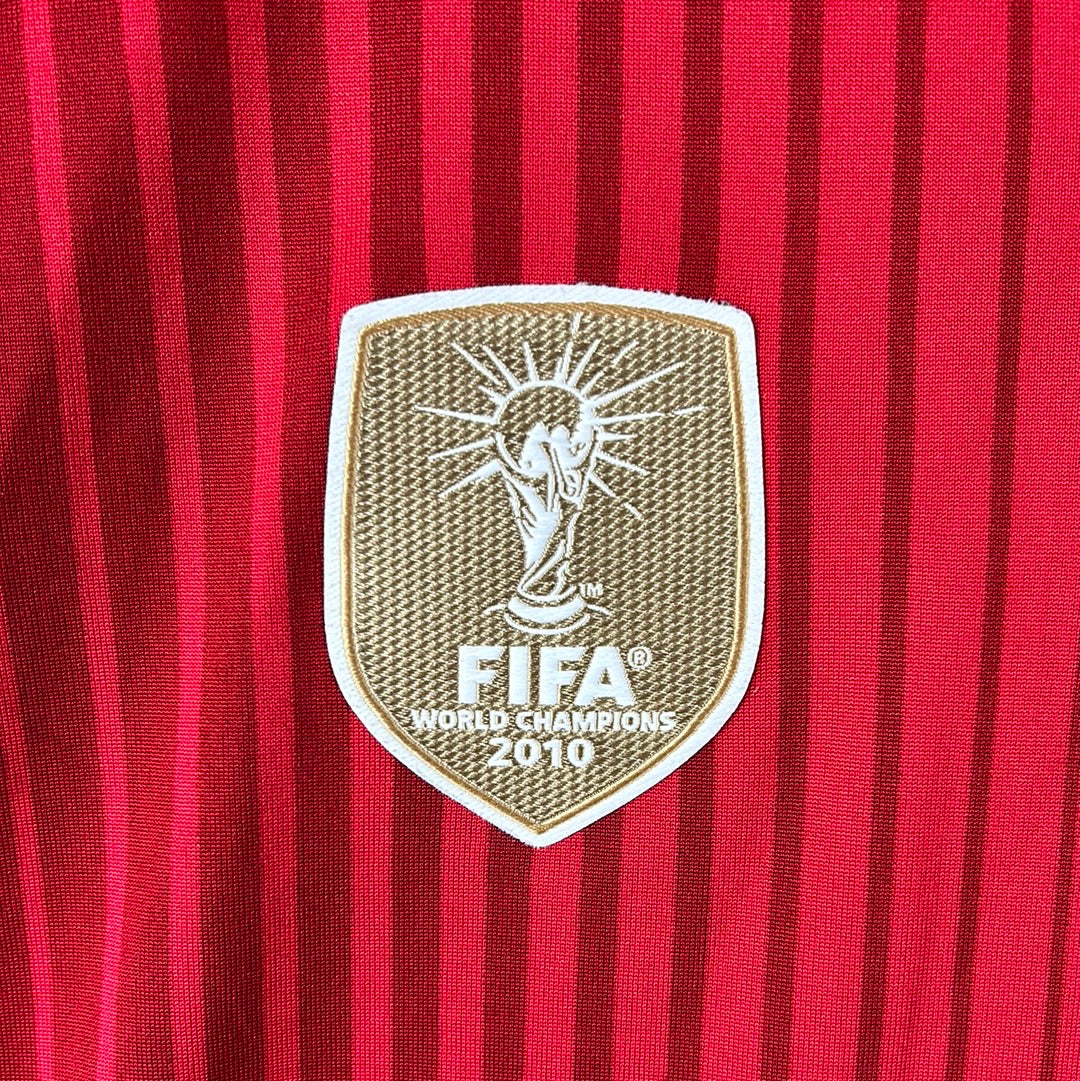 Shirt info: The home shirt for Spain in 2014/2015. The shirt is a deep red with gold detailing.