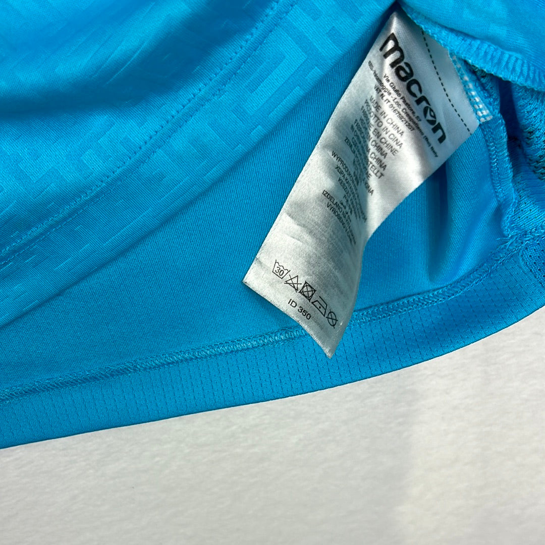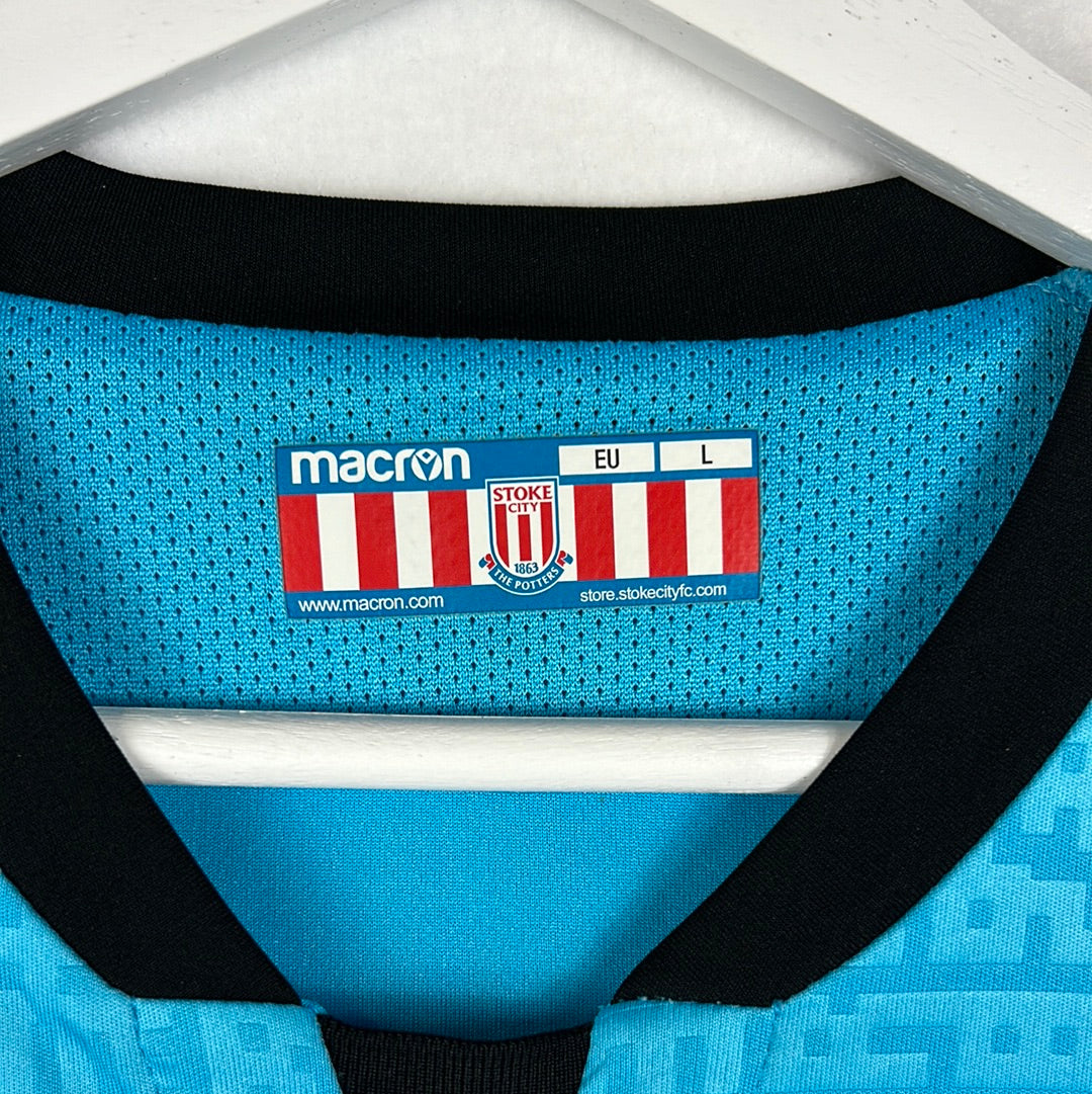 Shirt info: A rare goalkeeper shirt for Stoke City. This was the second-choice goalkeeper's shirt and was rarely used by the team. It has a nice pattern in the light blue material and black details. A large size shirt in a standard fit.