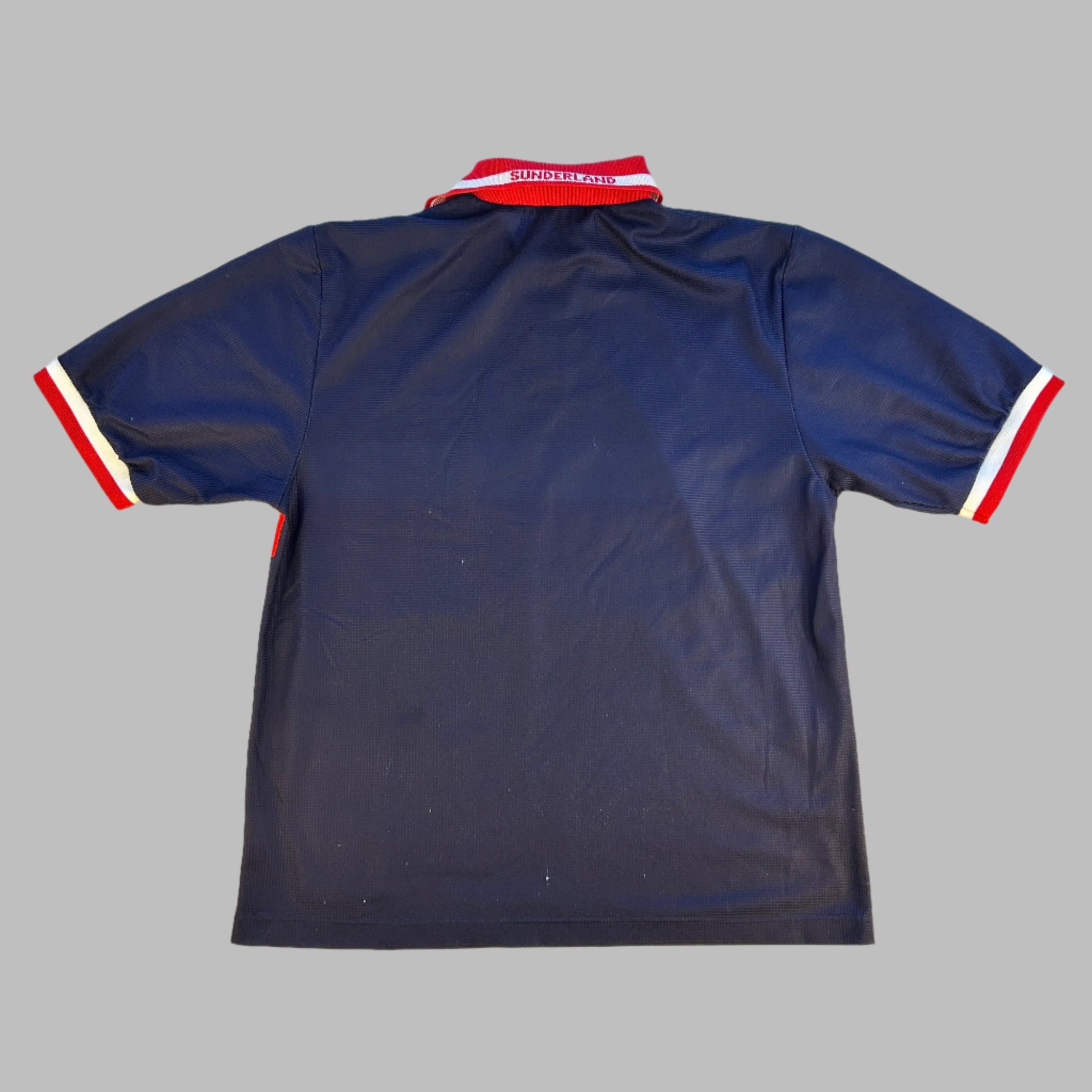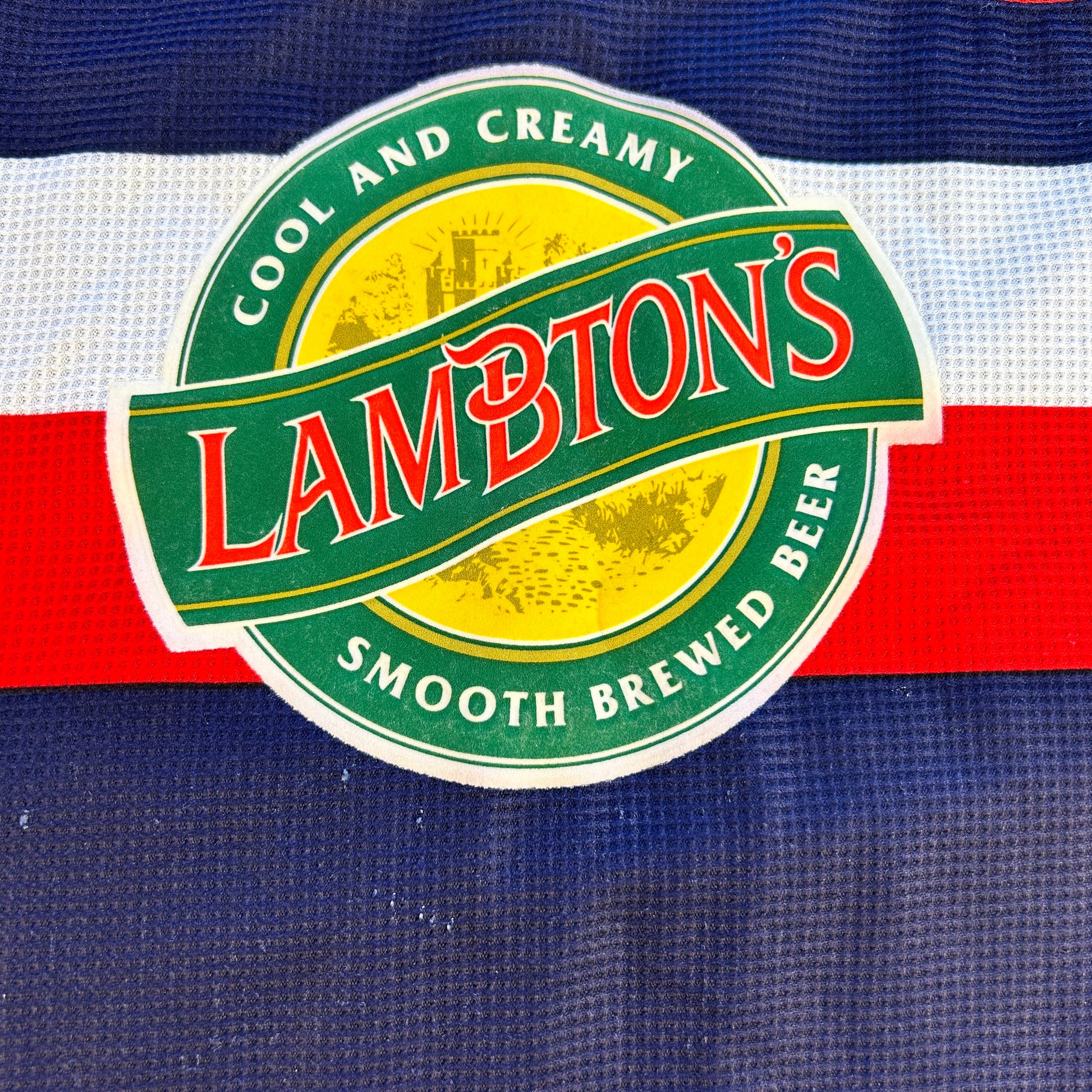 Shirt info: This is a great away shirt for Sunderland with the classic Lambton Beer front sponsors. The material is thicker than a modern shirt and has a more waffled texture to it.