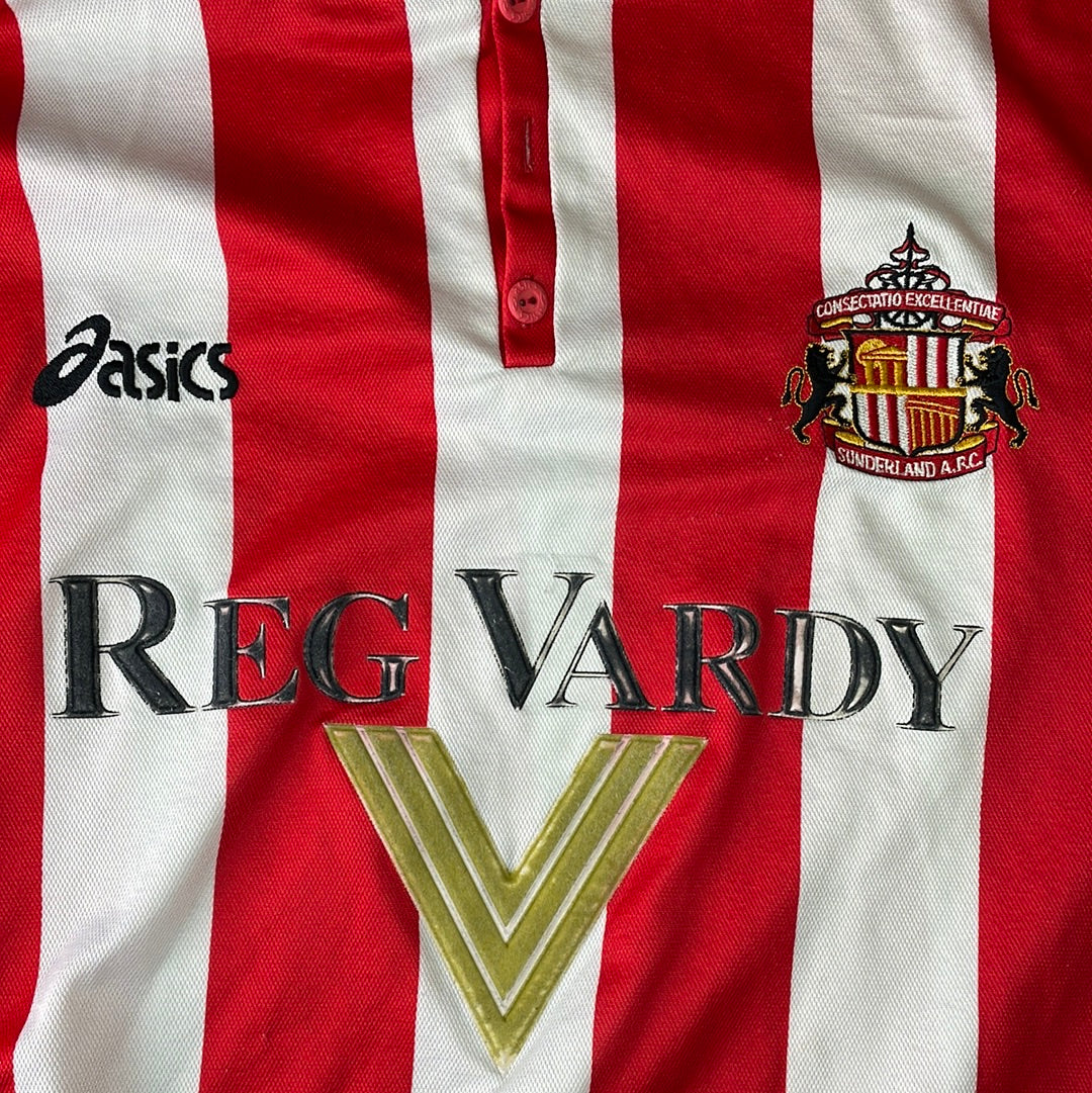 Shirt info: This was the last year of Sunderland and Asics before they moved on to Nike. This means Sunderland only used this shirt for one season in 1999/2000. The shirt has the Asic's name and Sunderland badges embroidered on it.