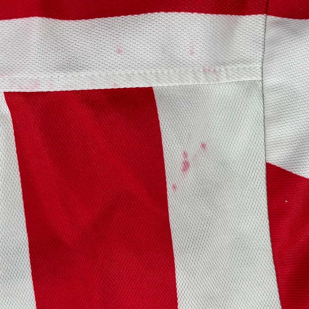 Condition Details: The shirt is in good condition. There is some wear to the sponsor and a pull just above it. There are a couple of marks on the back as shown in the photos.