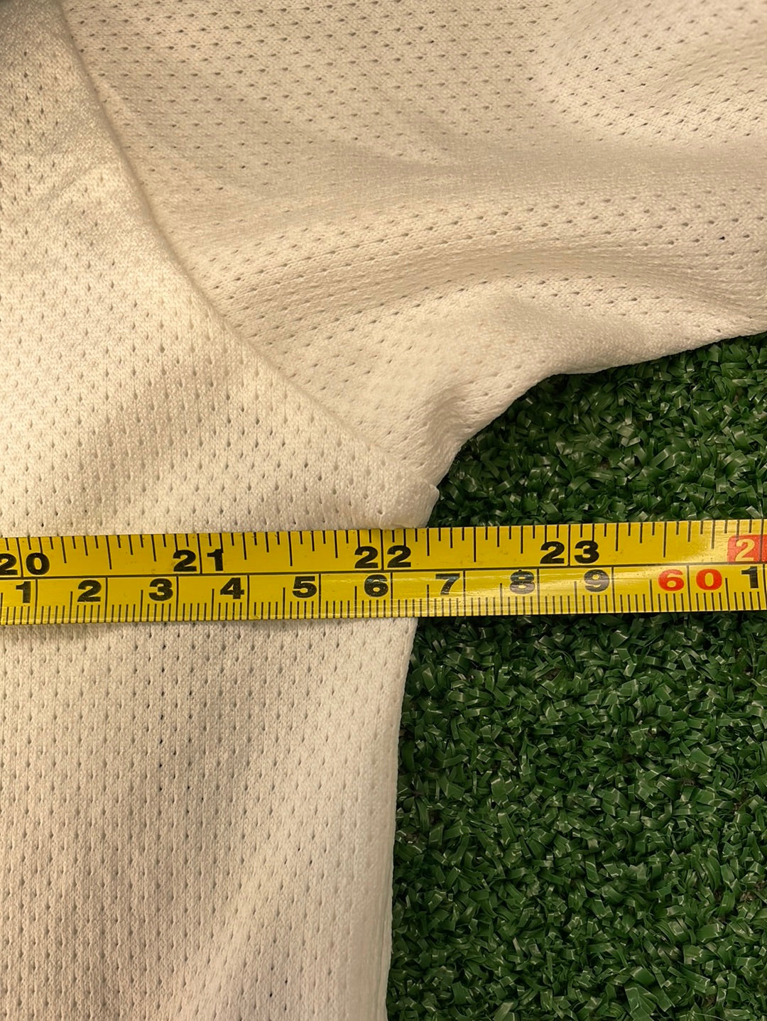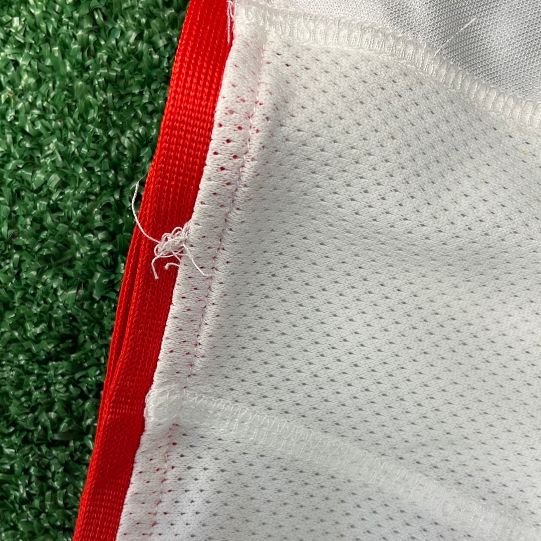 Shirt info: This was used as the away shirt for Sunderland in the 2000/2001 season and the third shirt in the 2001/2002 season. It is a silky material in the middle common with Nike shirts from this time. There is a more mesh-like material around the outside.