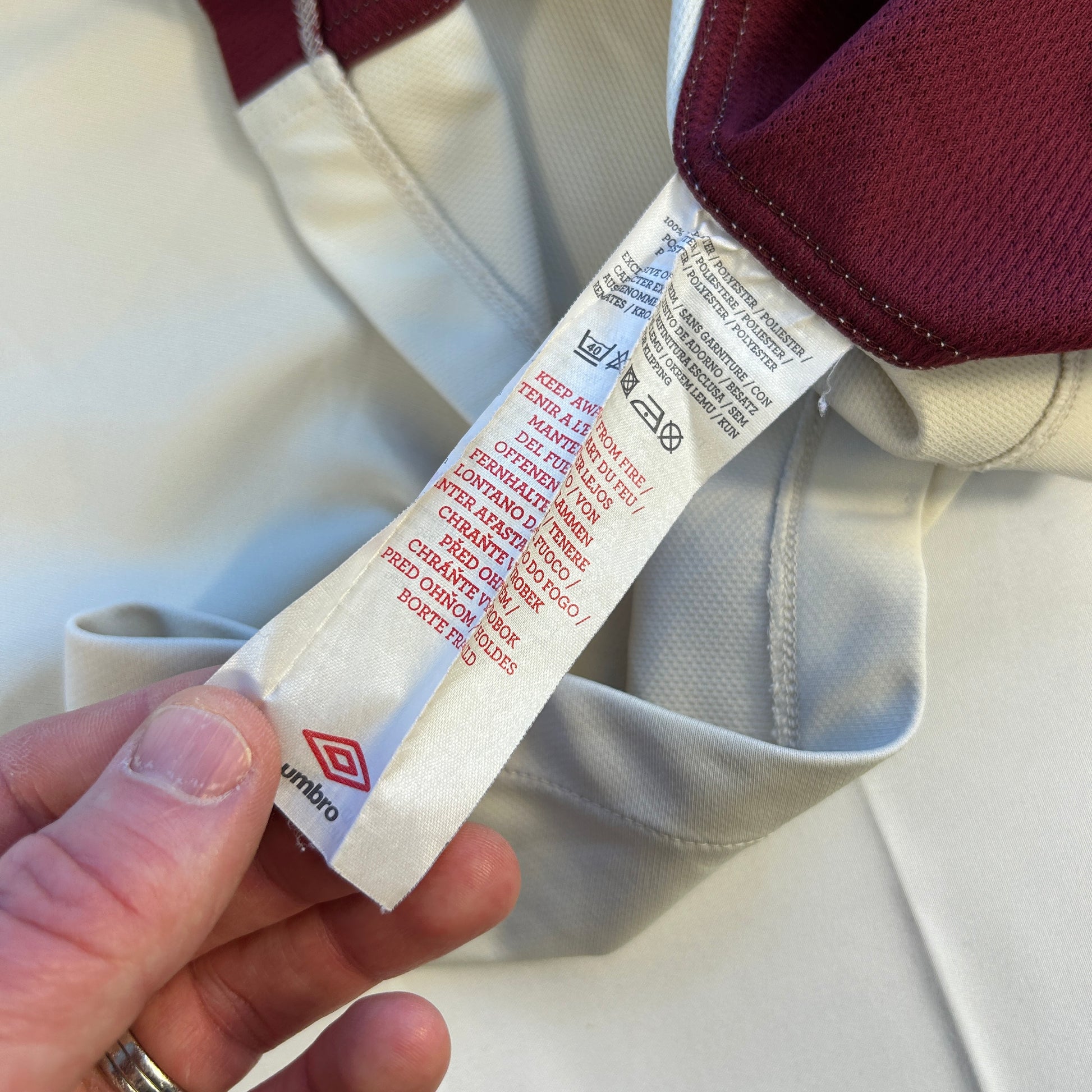 Shirt info: This was used as the away shirt for Sunderland in 2010/2011. It is an off-white shirt with burgundy detailing. At this time, it is comfortable to wear from the Tailored by Umbro range.