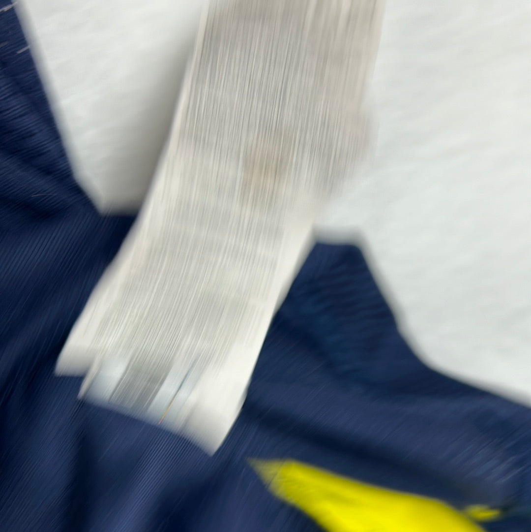 Shirt info:  The primary colour of the shirt was a deep navy blue, giving it a sleek and professional look. This was complemented by light blue and white accents, which added a contemporary flair to the design. These accents were typically found on the collar, sleeve edges, and the side panels of the shirt, providing a stylish contrast. The front Mansion Bet sponsor is a felt material.