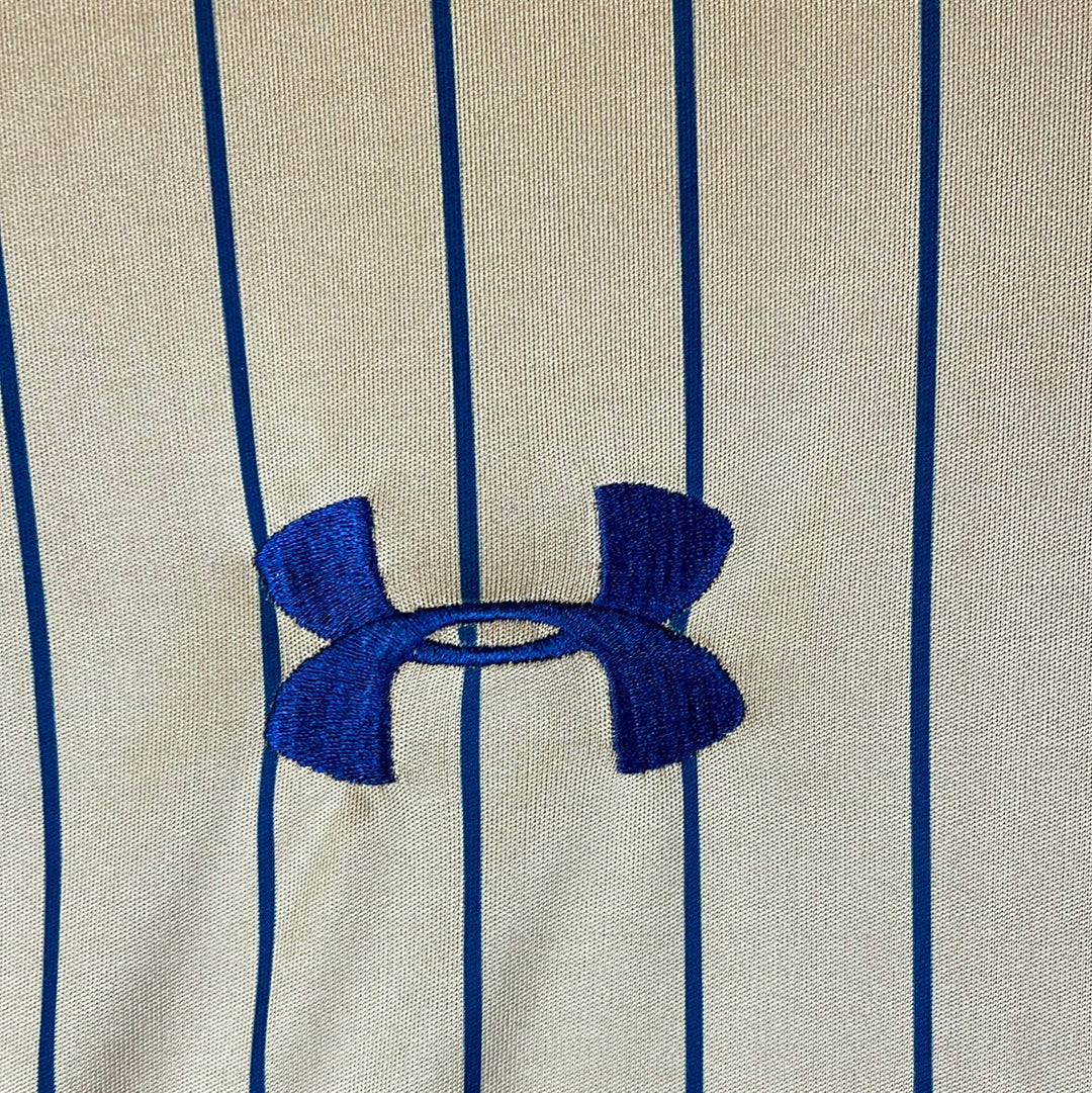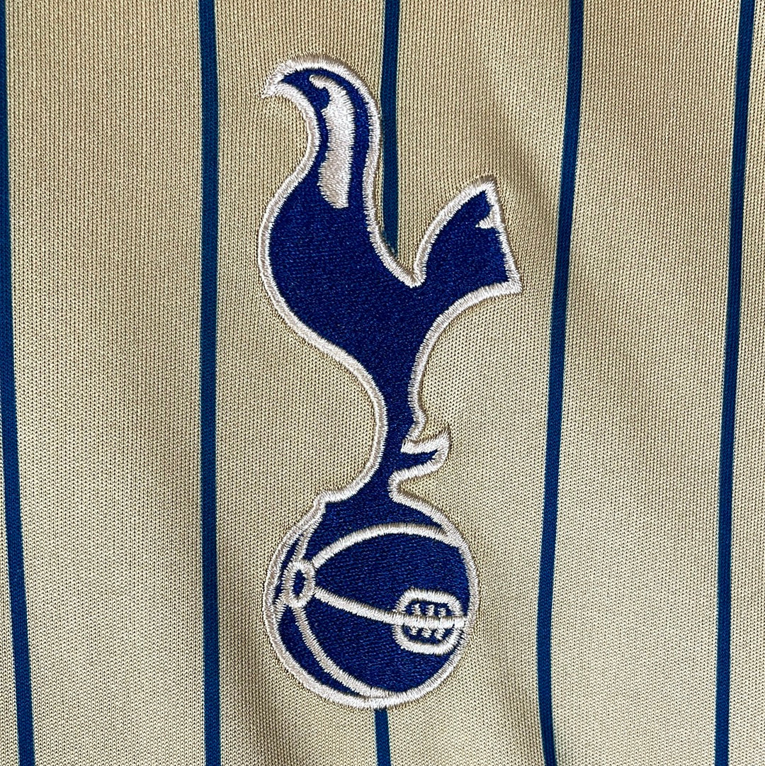 Shirt info: The third shirt for Tottenham Hotspur in the 2016/2017 season. This is a gold shirt with dark blue stripes. The Under Armour and Spurs badges are embroidered. The AIA sponsor is a print. There is no name on the back or sleeve patches.
