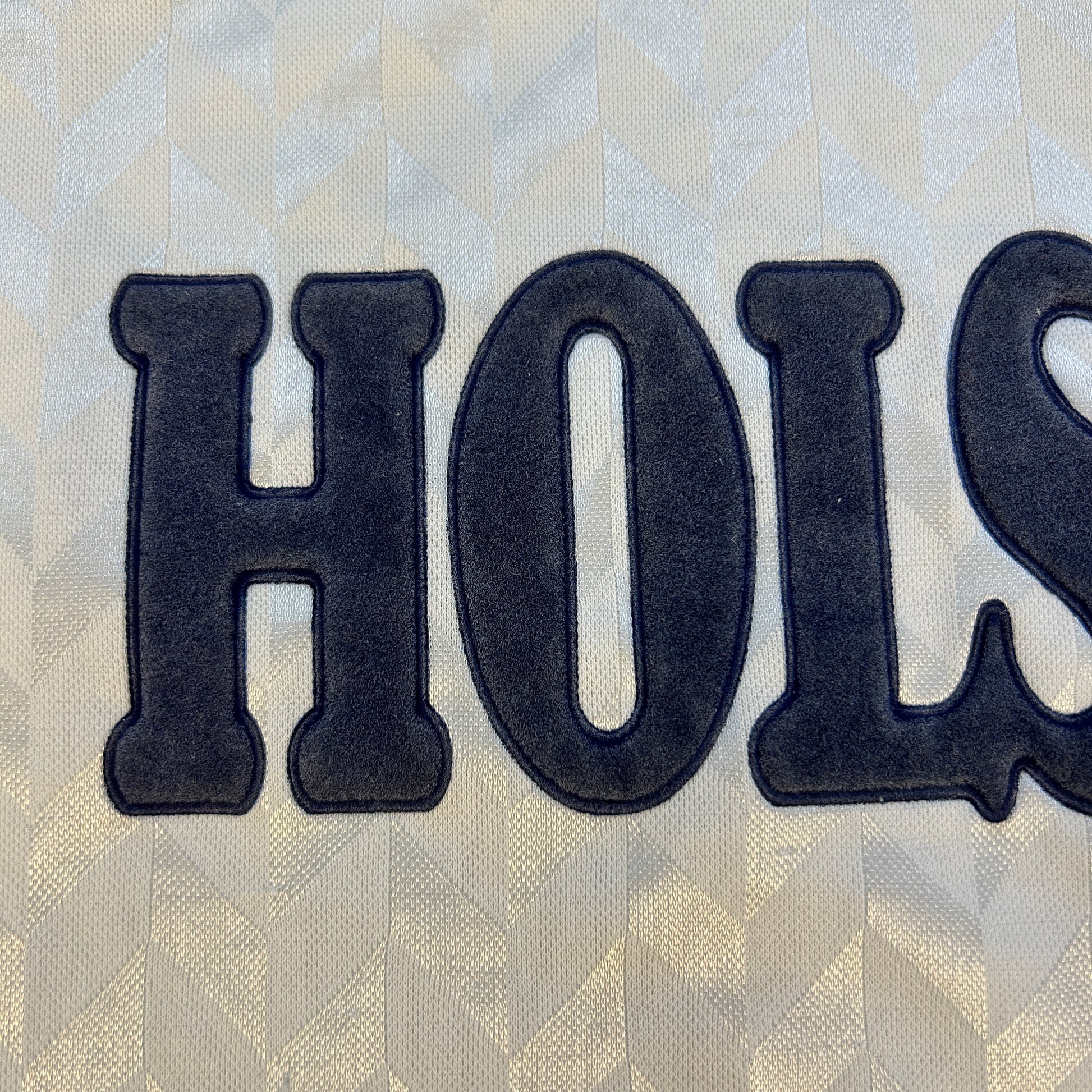 Shirt info: The Spurs home shirt for the 1987/1988 and 1988/1989 season. A classic Hummel look with a chevron design in the material.