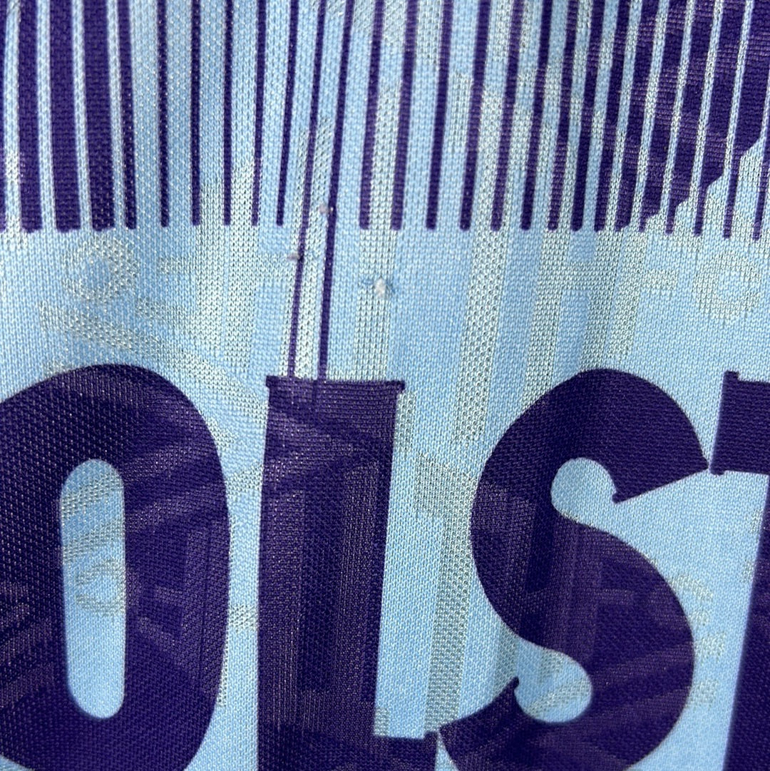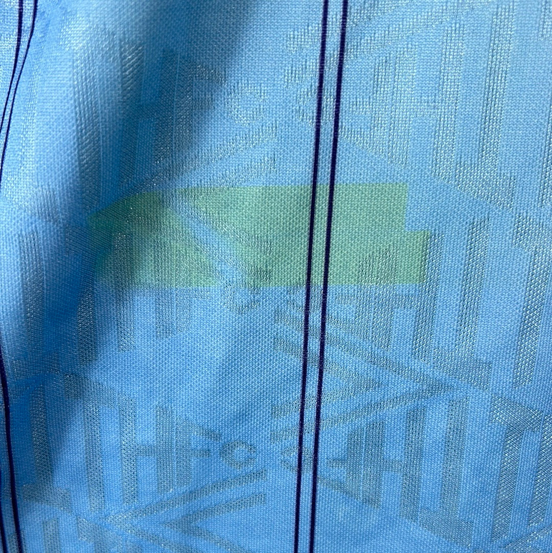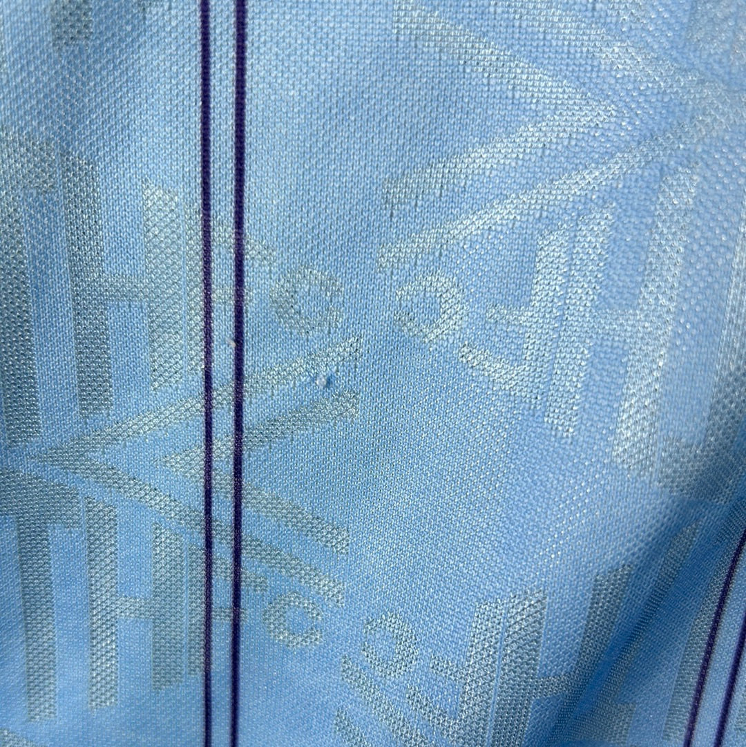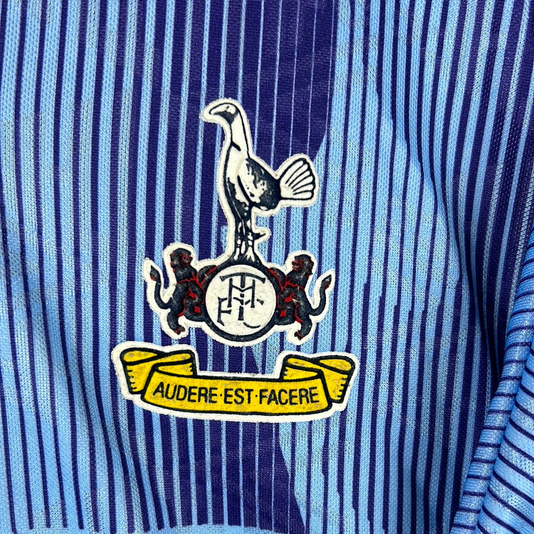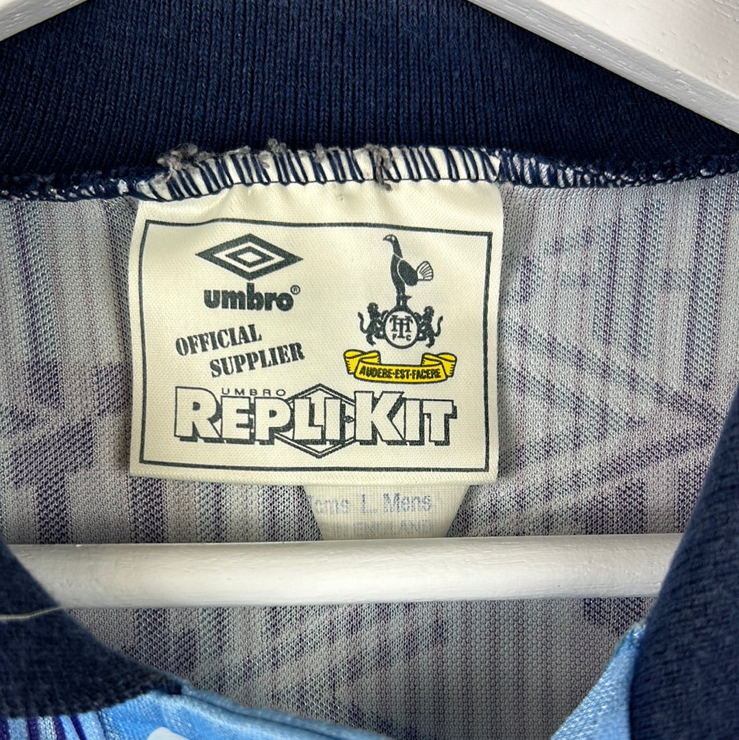Shirt info: This is the Spurs' third shirt from the 1992/1993 and 1993/1994 seasons. The shirt's light blye design has SPURS incorporated in the pattern on the front and back. It is a classic from Totthenam's shirt history