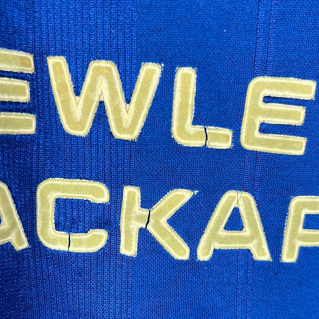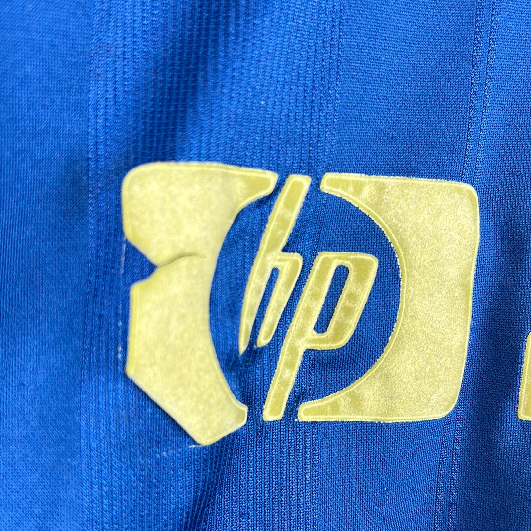 Condition Details: The shirt material is in very good condition. There is an occasional light bobble. The sponsor has some lifting and cracking. There is one pin prick hole in the front.