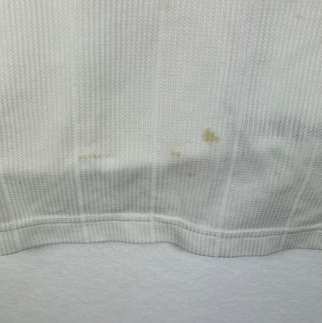 Condition Details: The shirt material is in gold condition. There are no pulls or bobbles, overall material feel is excellent. There are some marks on the shirt.