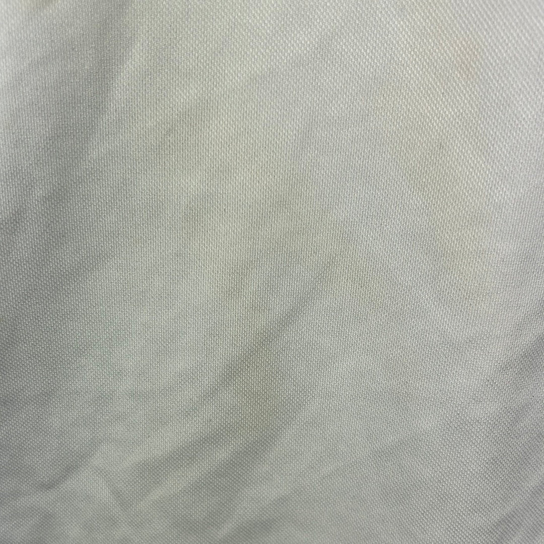 Condition Details: The shirt is in very good condition with no pulls or bobbles. The material has faded slightly from the crisp white it would have initially been.