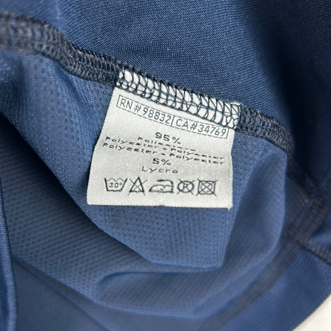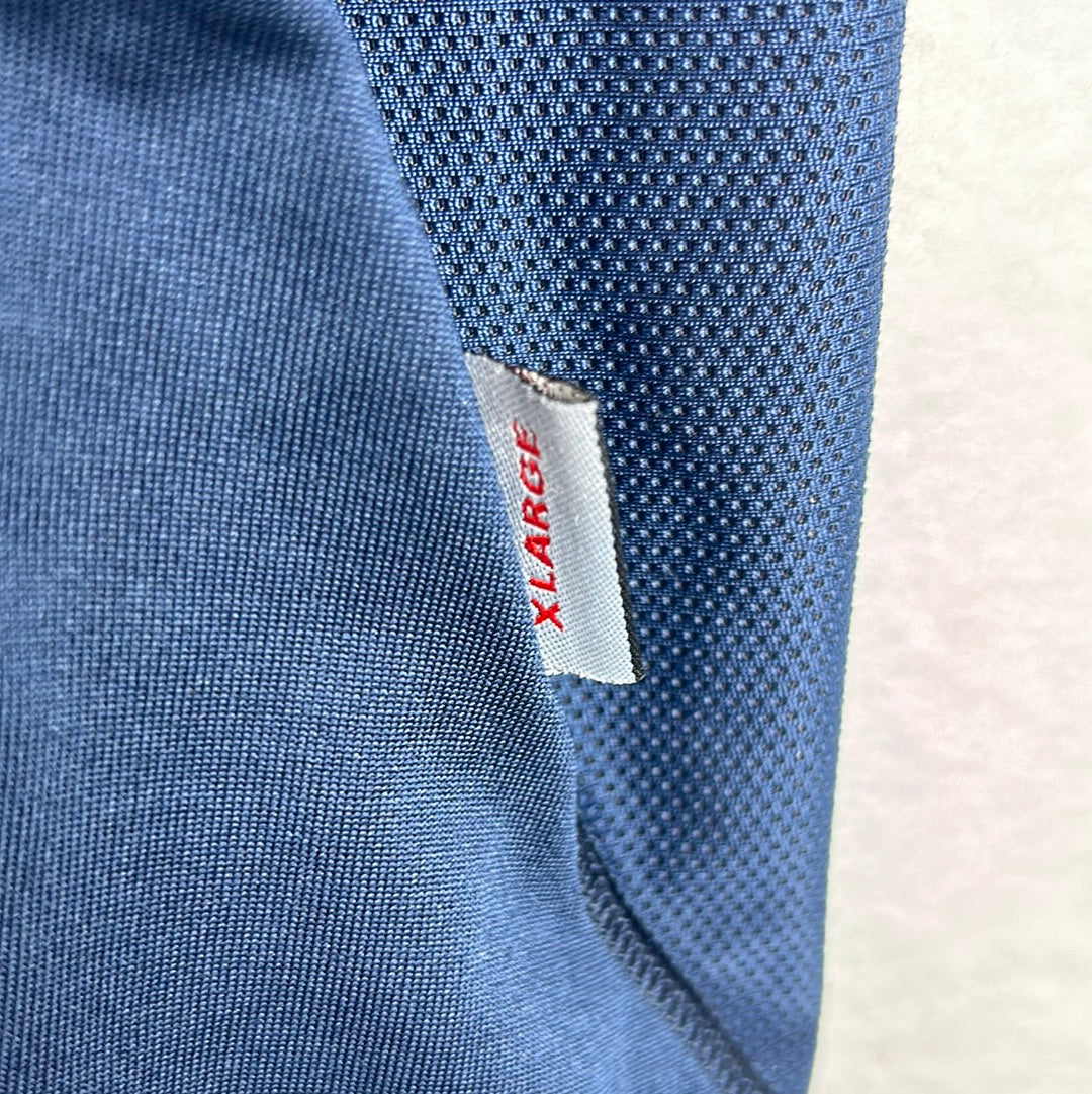 Shirt info:  The primary colour of the shirt was a deep navy blue, giving it a sleek and professional look. The material is a stretch type, common with Kapp shirts in the early 00s/ The fit is tight for an extra large so it is closer to a size large in a standard fit shirt.