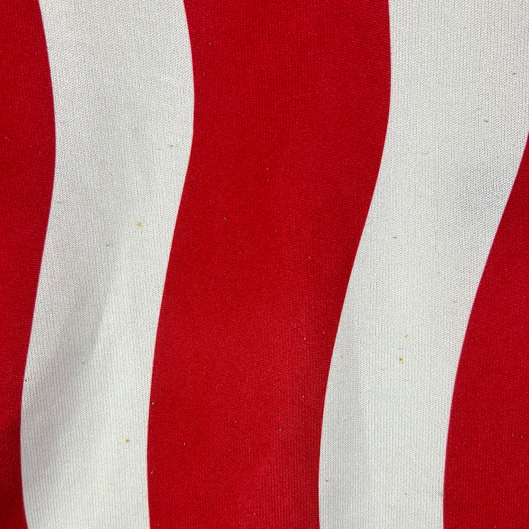 Shirt info: The red and white striped USA men's home shirt worn in the 1994-1995 season. This home shirt bucked the trend for the USA home shirts in the 1990s with red playing such a dominant colour. The shirt features an embroidered USA badge and Adidas logo.
