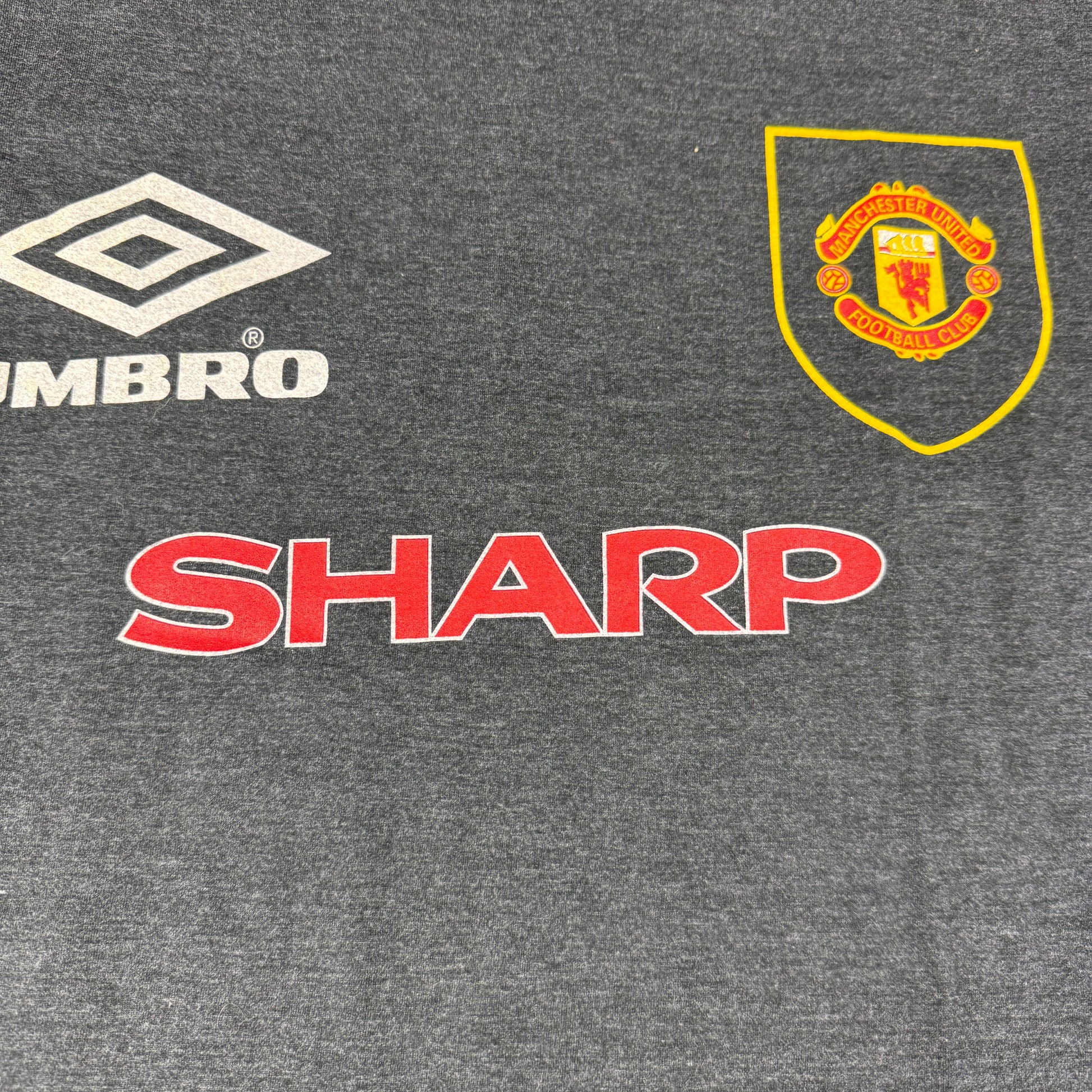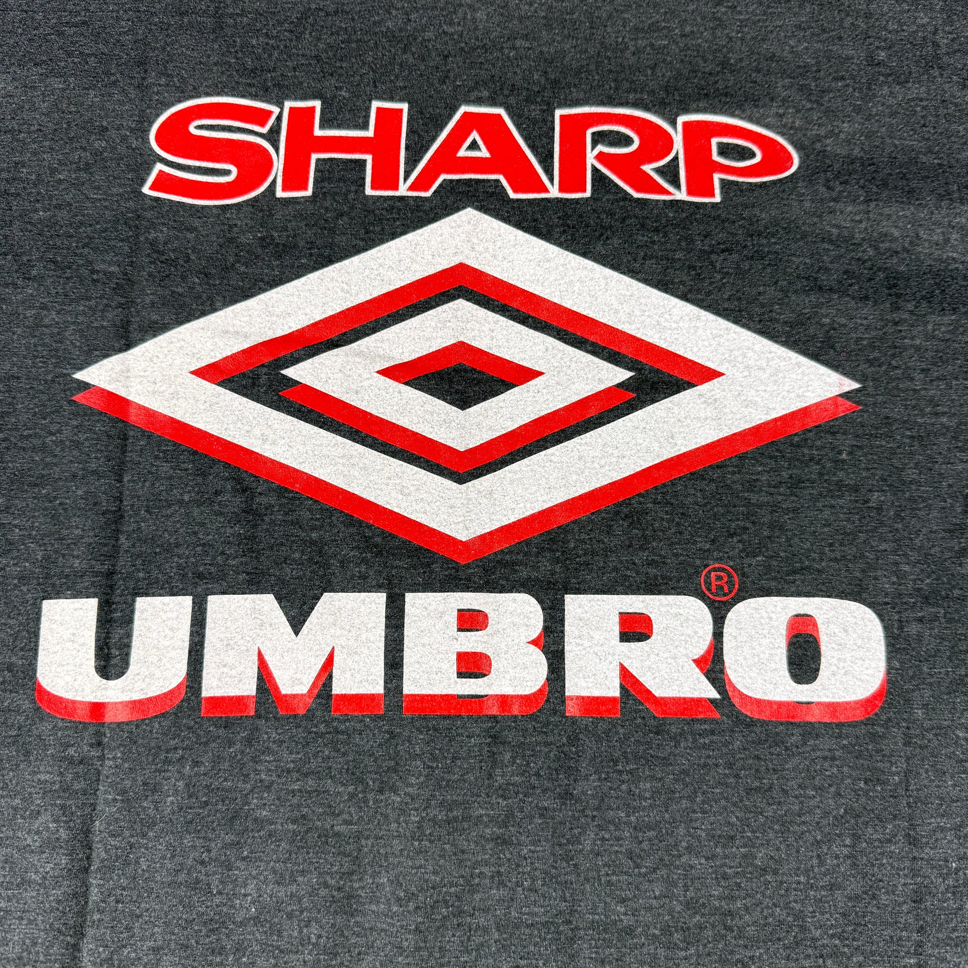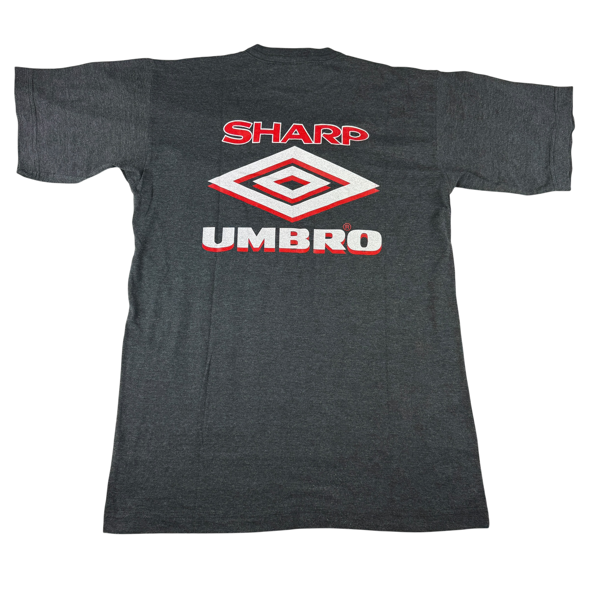 Shirt info: An Umbro t-shirt from the 1995/1996 season. The front is styled like a football shirt. The back has SHARP and UMBRO logos.
