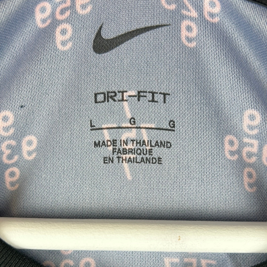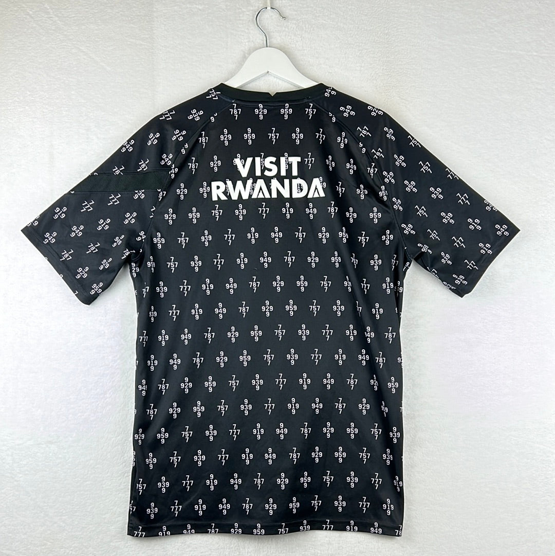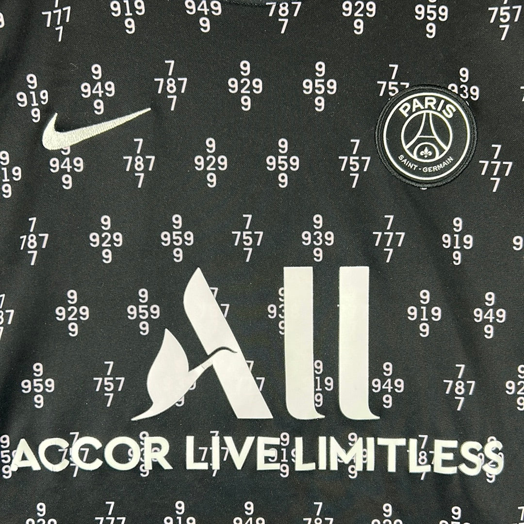 Shirt info: This is the vintage Paris Saint-Germain 2021-2022 pre-match short-sleeve shirt worn before matches during the 2021-2022 season. It offers a breathable feel thanks to its lightweight engineered fabric. The shirt has Nike DRI-FIT technology.