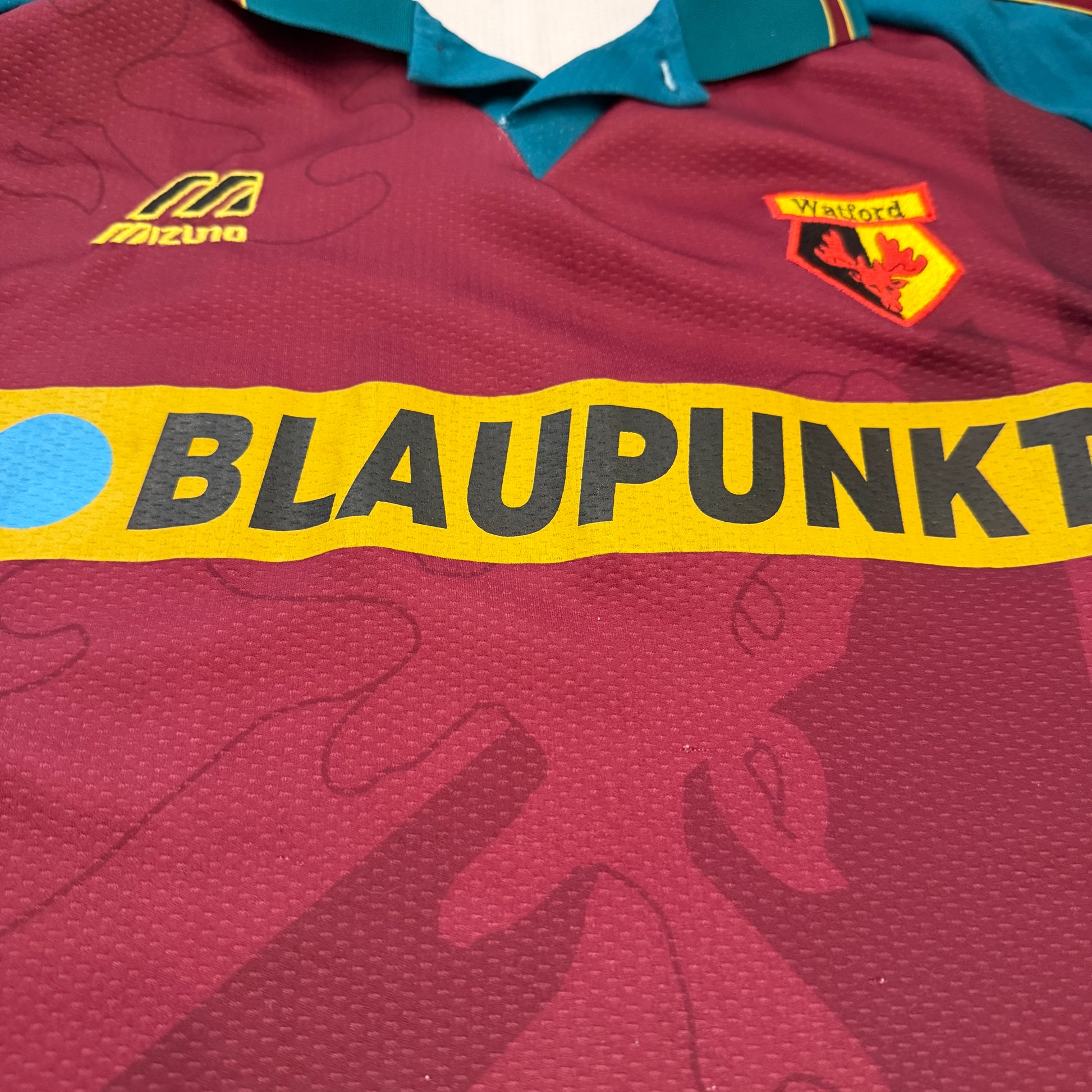 Shirt info: The 1995/1996 away shirt for Watford with the classic Blaupunkt front sponsor.