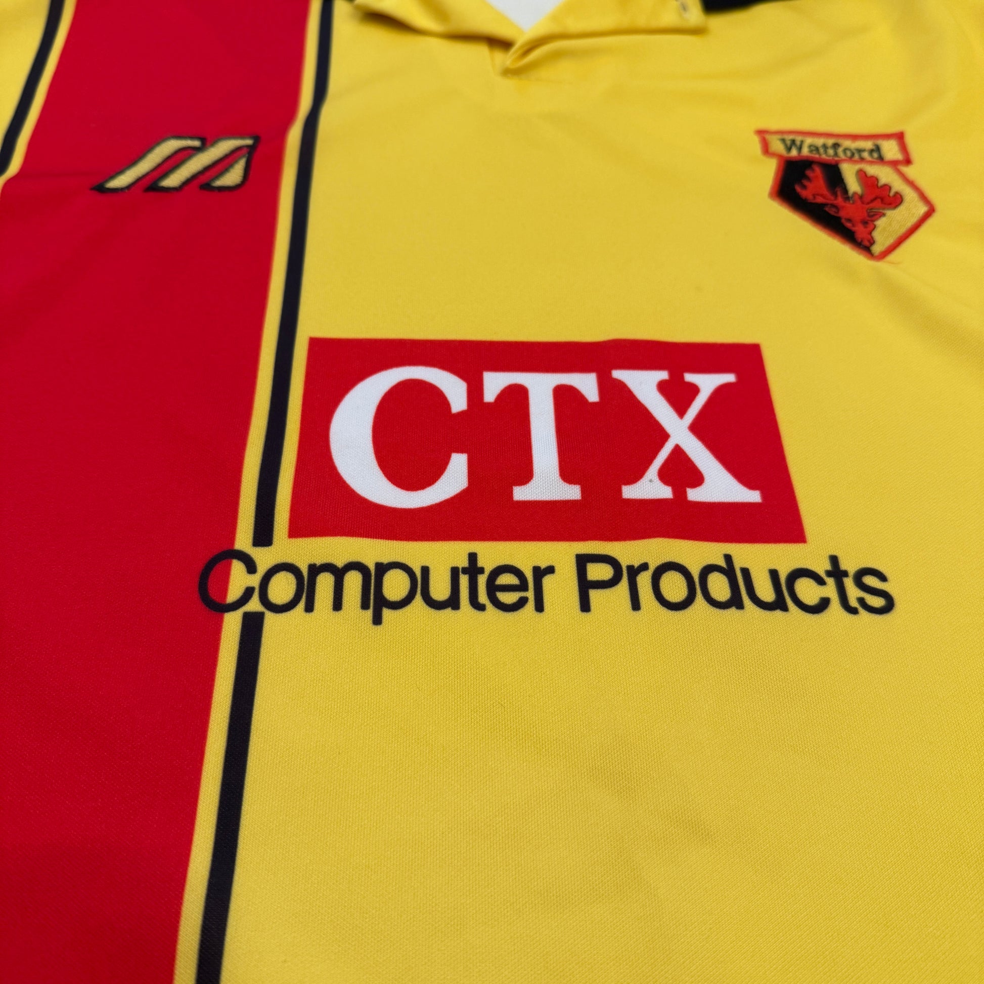 Shirt info: The 1997/1998 home shirt for Watford with CTX Computer Products front sponsor.