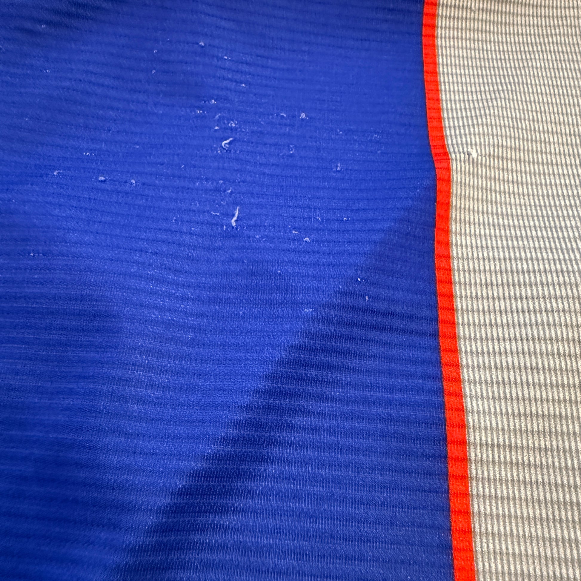 Condition Details: The shirt is in good condition. There is an odd micro bobble on the front. There is a small scuff on the sleeve and one small pull in the back.