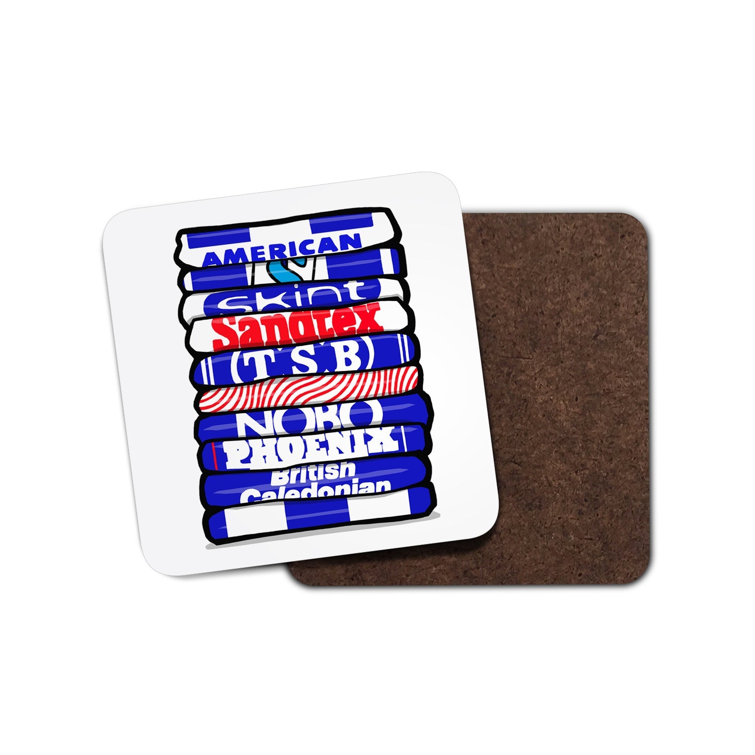 Classic football shirts on a quality, hardboard, gloss finish coaster.