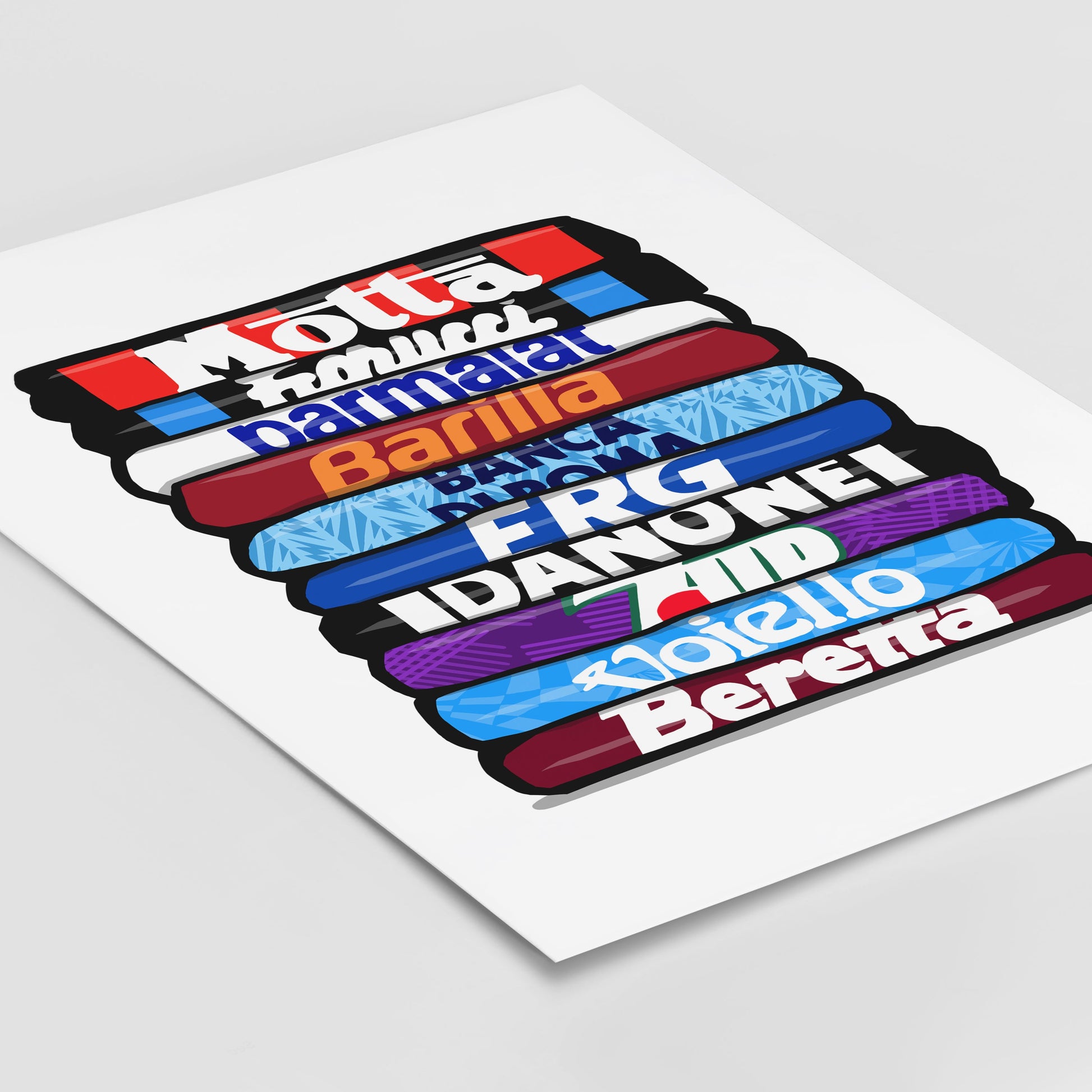 Original design featuring iconic classic retro football shirts on a quality poster.