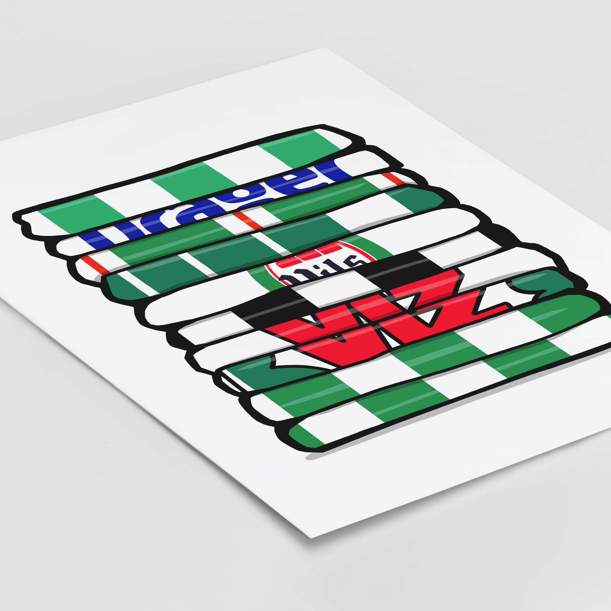 Original design featuring iconic classic retro football shirts on a quality poster.